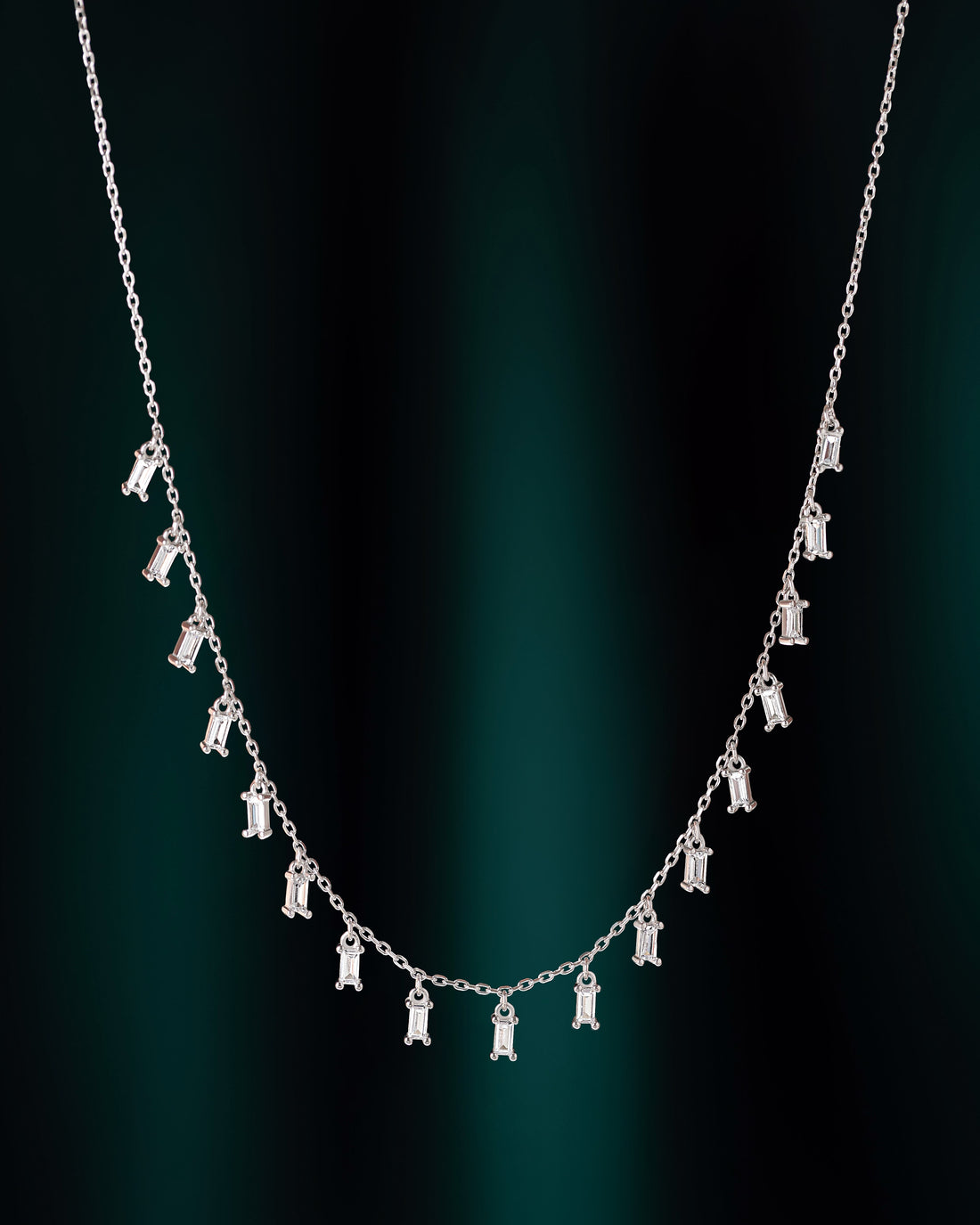 Radiant Baguette Multi Charm Necklace in 92.5 sterling silver with sparkling 5A+ zirconia stones. Rhodium...