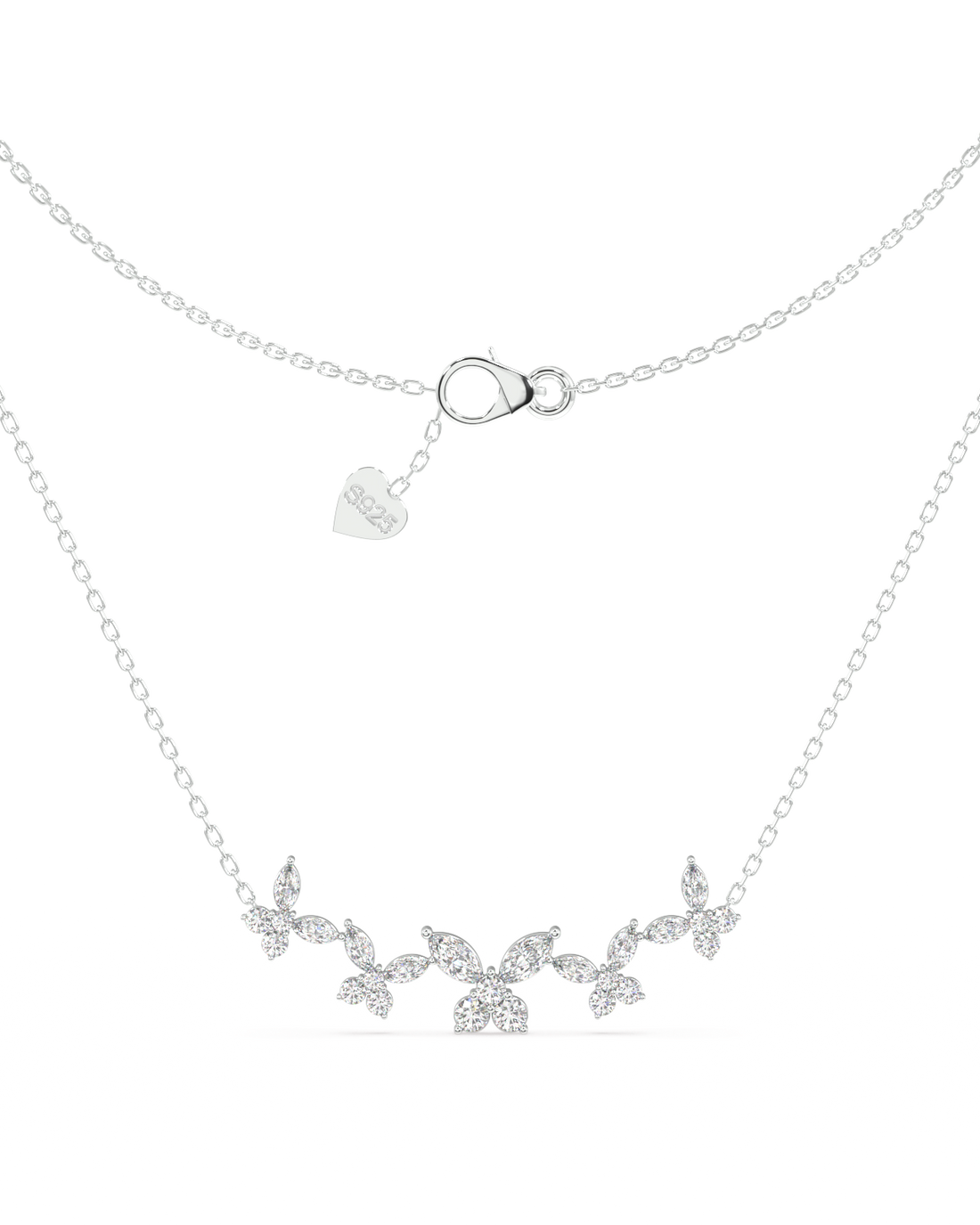 Dual Chain Butterfly Stacked Necklace in 92.5 sterling silver with sparkling 5A+ zirconia stones. Rhodium...