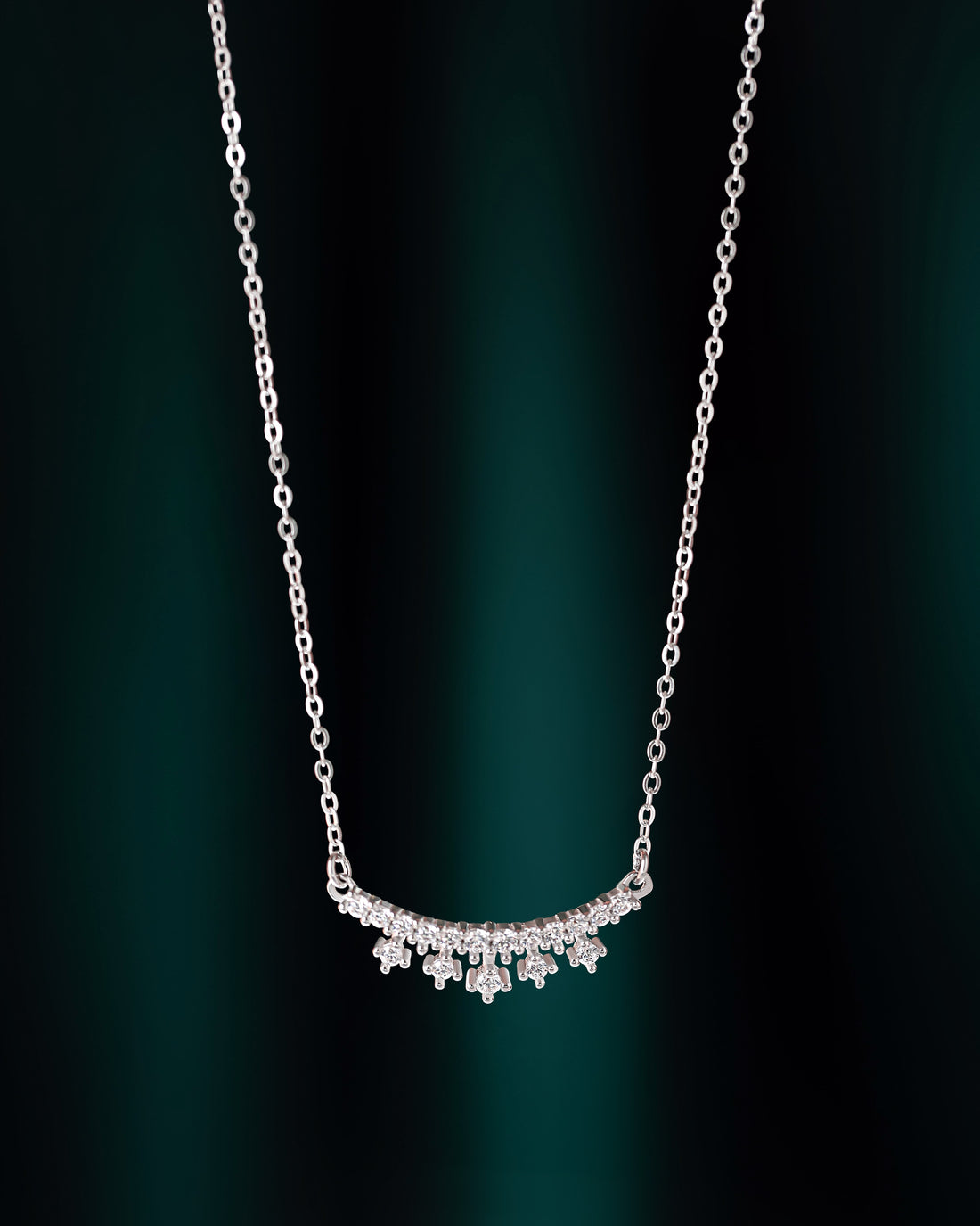 Seamless Icon Necklace in 92.5 sterling silver with 5A+ zirconia stones. Rhodium plated for brilliance,...