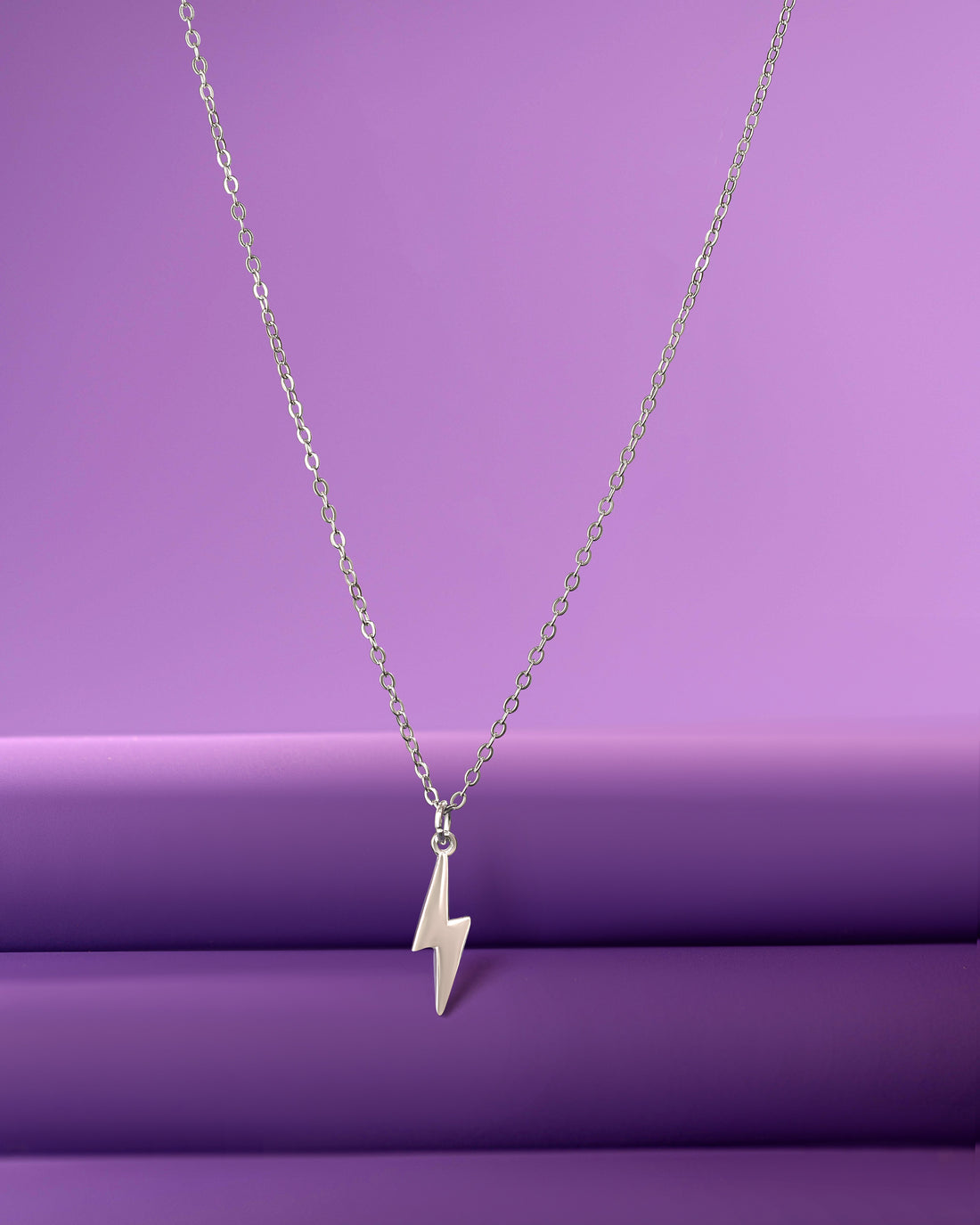 Minimal Dainty Thunder Charm Necklace in 92.5 sterling silver with 5A+ zirconia stones. Rhodium plated...