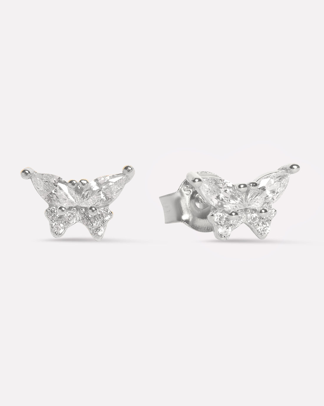 Radiant Butterfly Stud Earrings in 92.5 silver with rhodium plating and 5A+ zirconia stones. A...