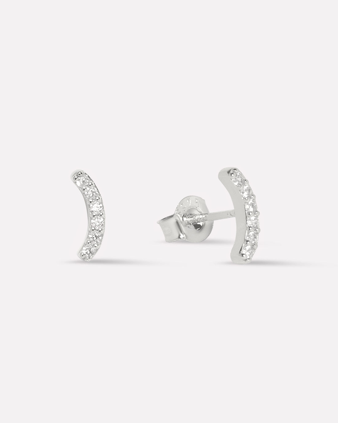 Curve Bar Zirconia Stud Earrings in 92.5 silver with rhodium plating. Sparkling stones along a...