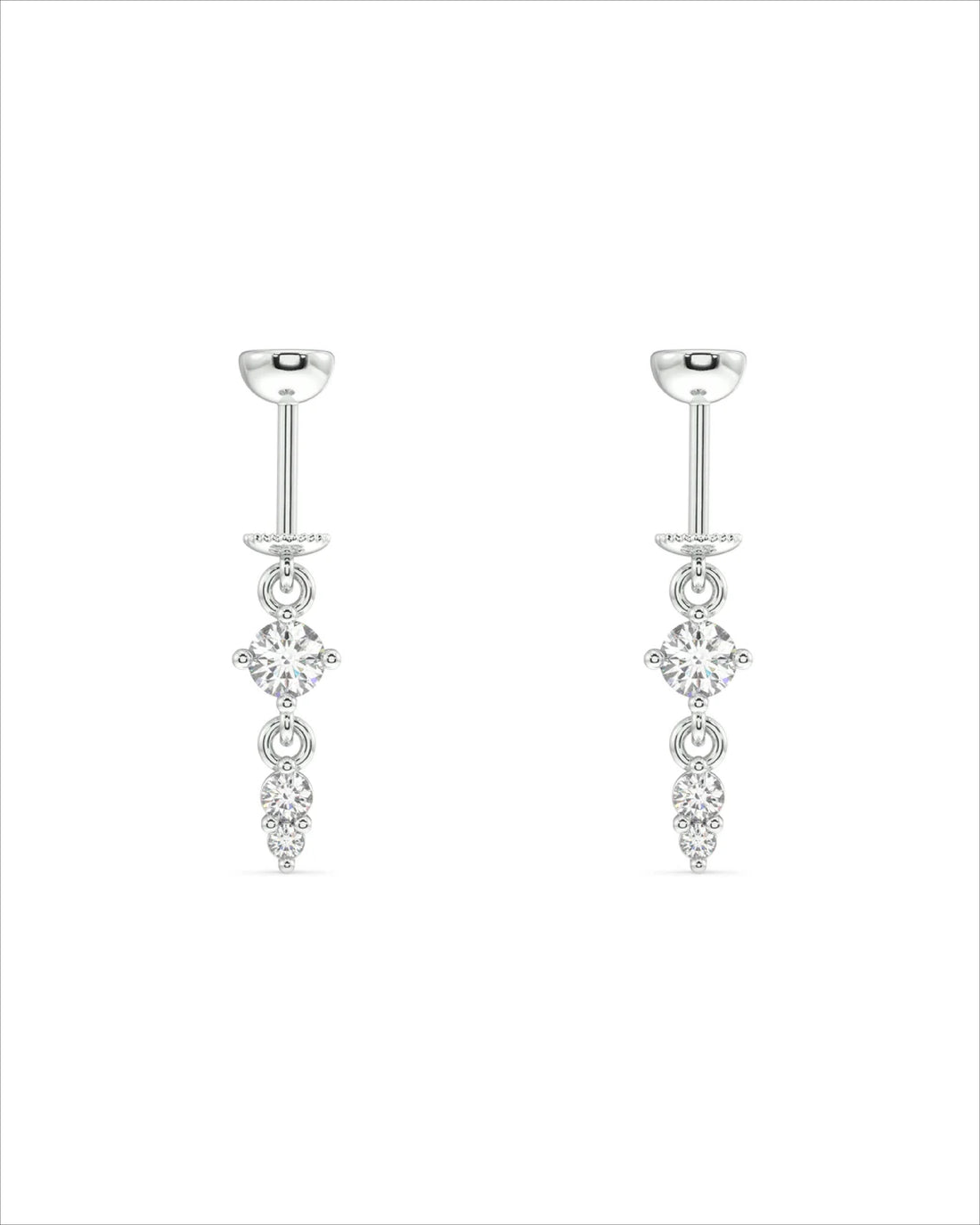 Tri Zirconia Flat Back Screw Stud Earrings in 92.5 sterling silver with 5A+ zirconia stones....