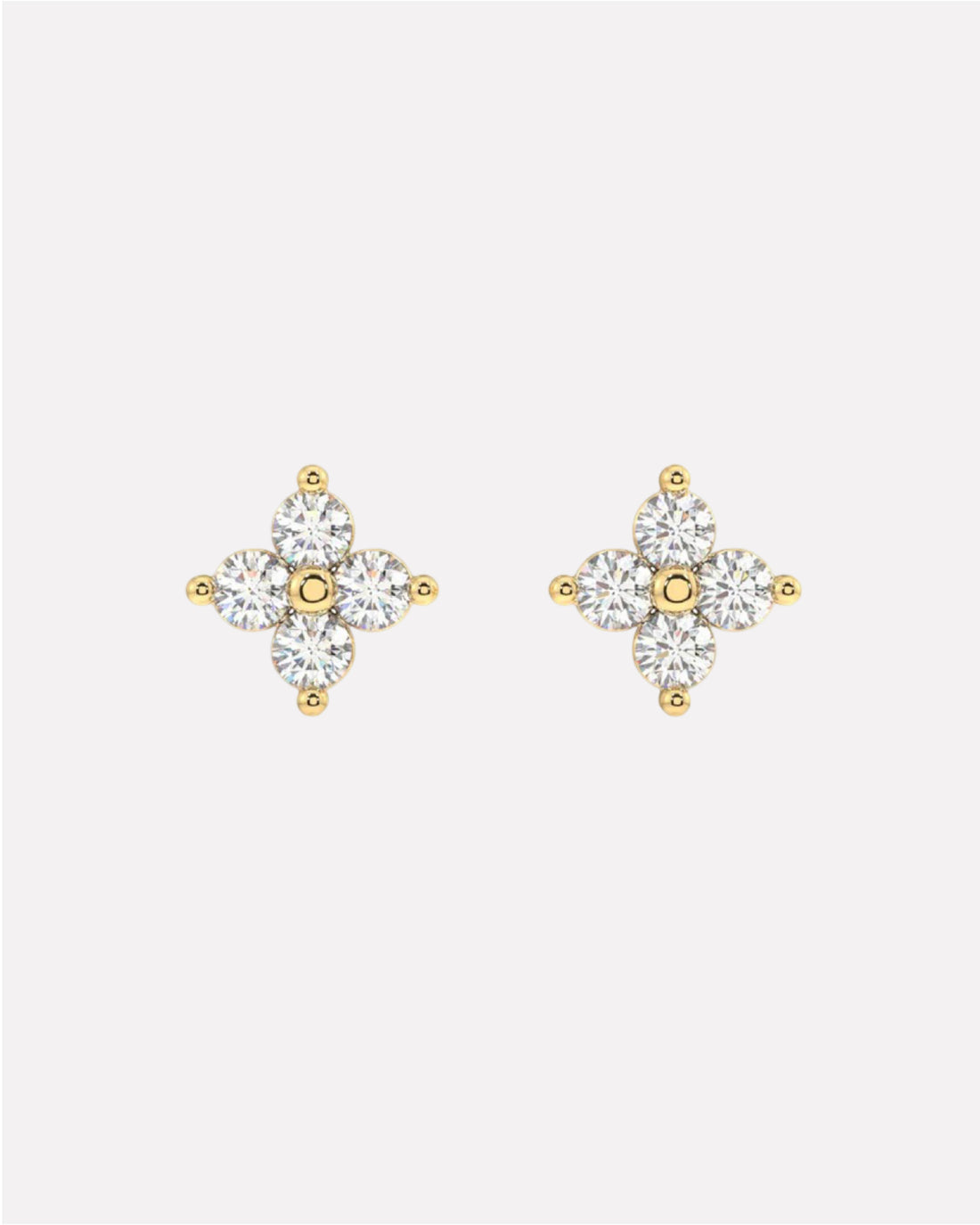 Three Petal Stud Earrings in 92.5 silver with 14K gold plating and 5A+ zirconia stones....