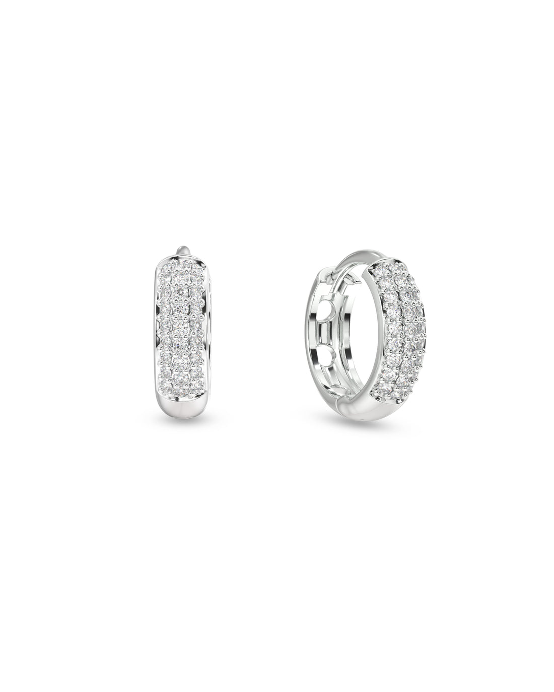 Rhodium-plated Zirconia Thick hoops, 10MM in 92.5 silver with 5A+ zirconia stones. The bold yet...