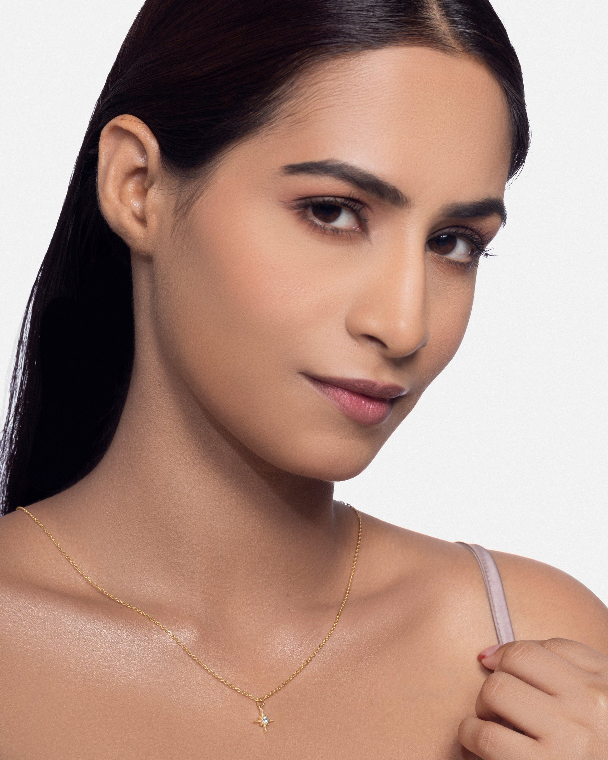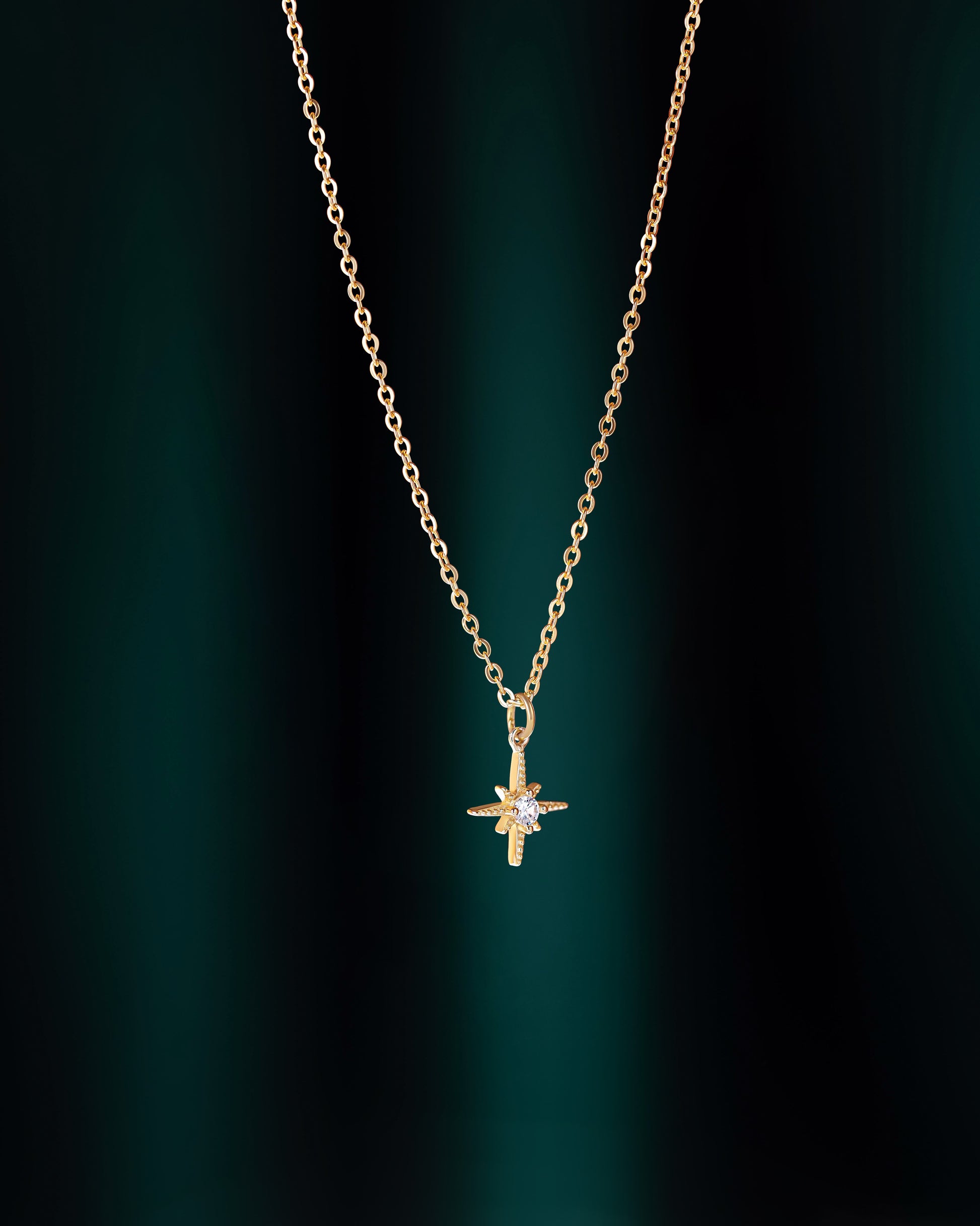 Burst of Light Charm Necklace in 92.5 sterling silver with 5A+ zirconia stones, 14K gold plated for a luxurious finish. Radiant and sparkling, this necklace adds a touch of elegance and brilliance to any outfit.