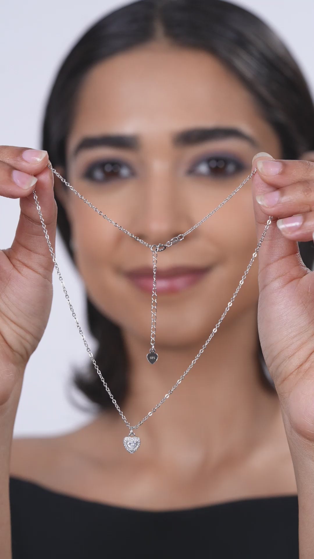 Eternal Love Solitaire Heart Necklace in 92.5 sterling silver with 5A+ zirconia stones. Rhodium plated for brilliance, this romantic necklace celebrates everlasting love, perfect for gifting or special occasions.