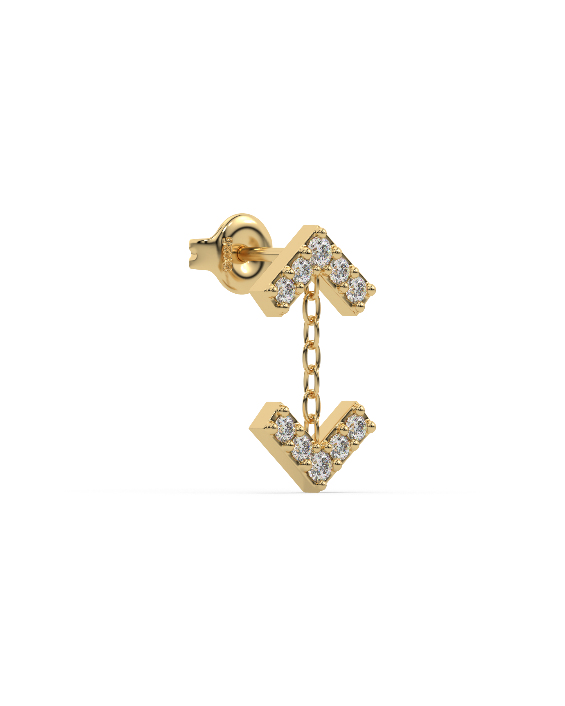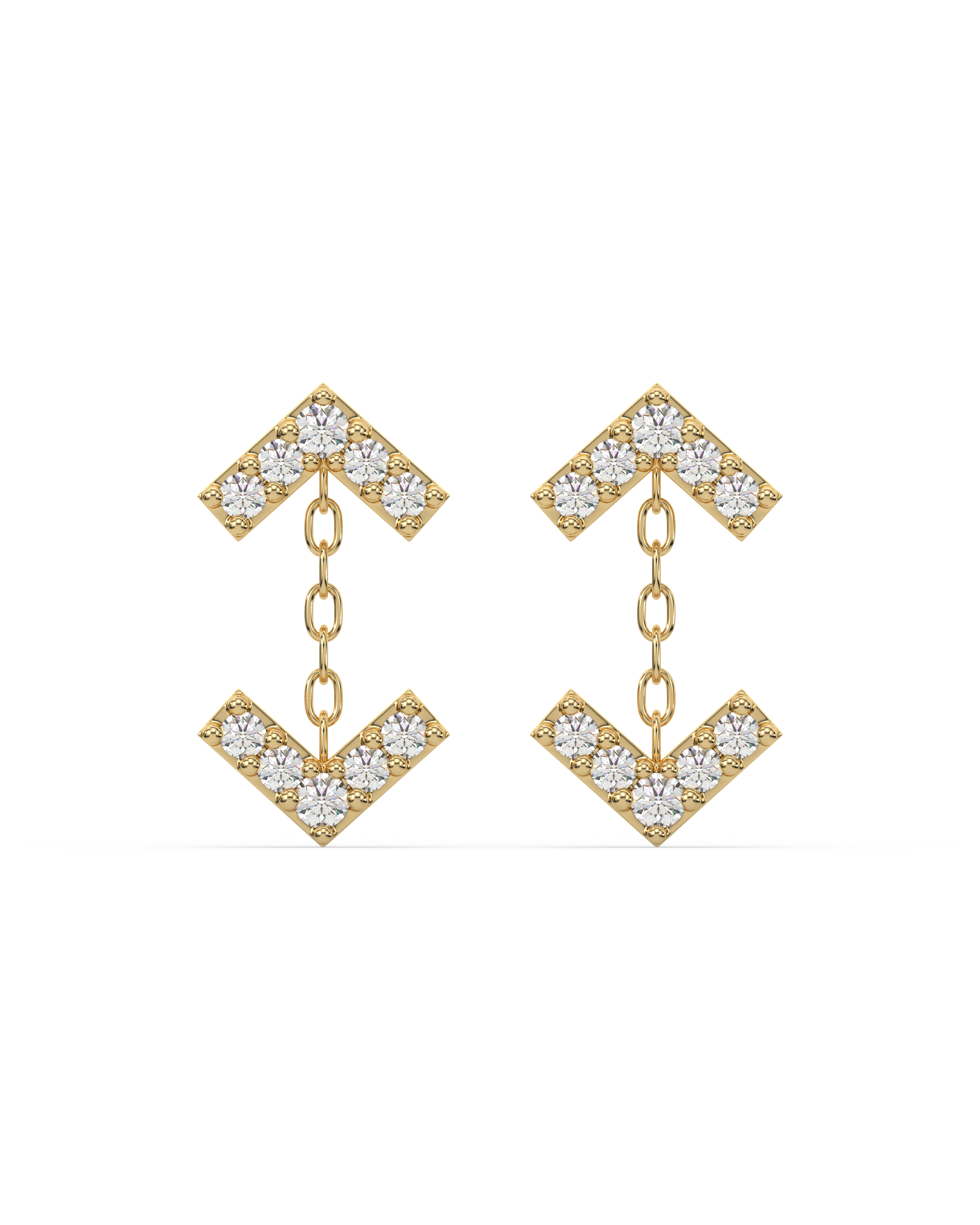 Chic Inverse Arrow Stud Earrings crafted in 92.5 silver, plated with 14K gold and set with 5A+ zirconia stones. A sleek inverted arrow silhouette blending modern minimal style with sparkling sophistication.