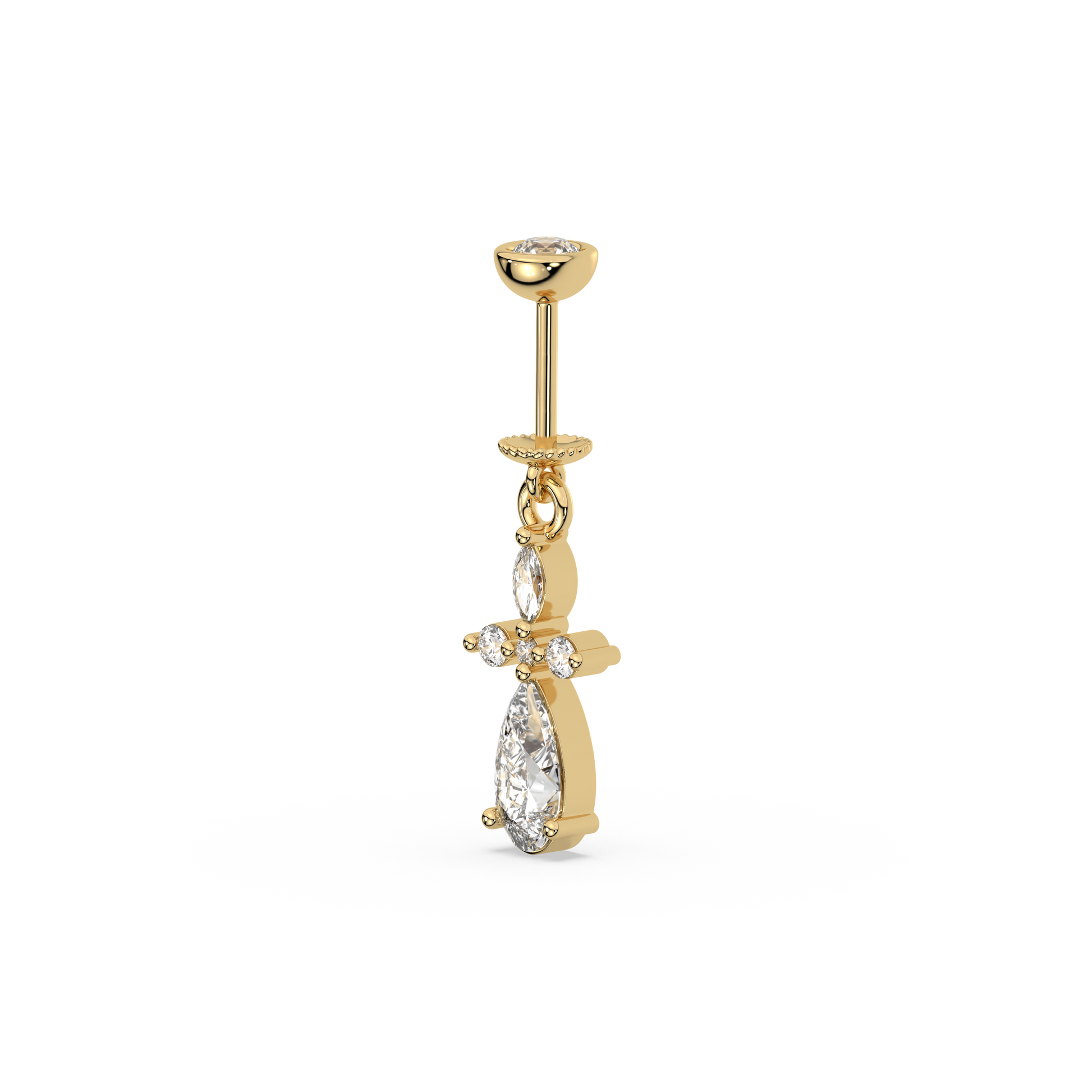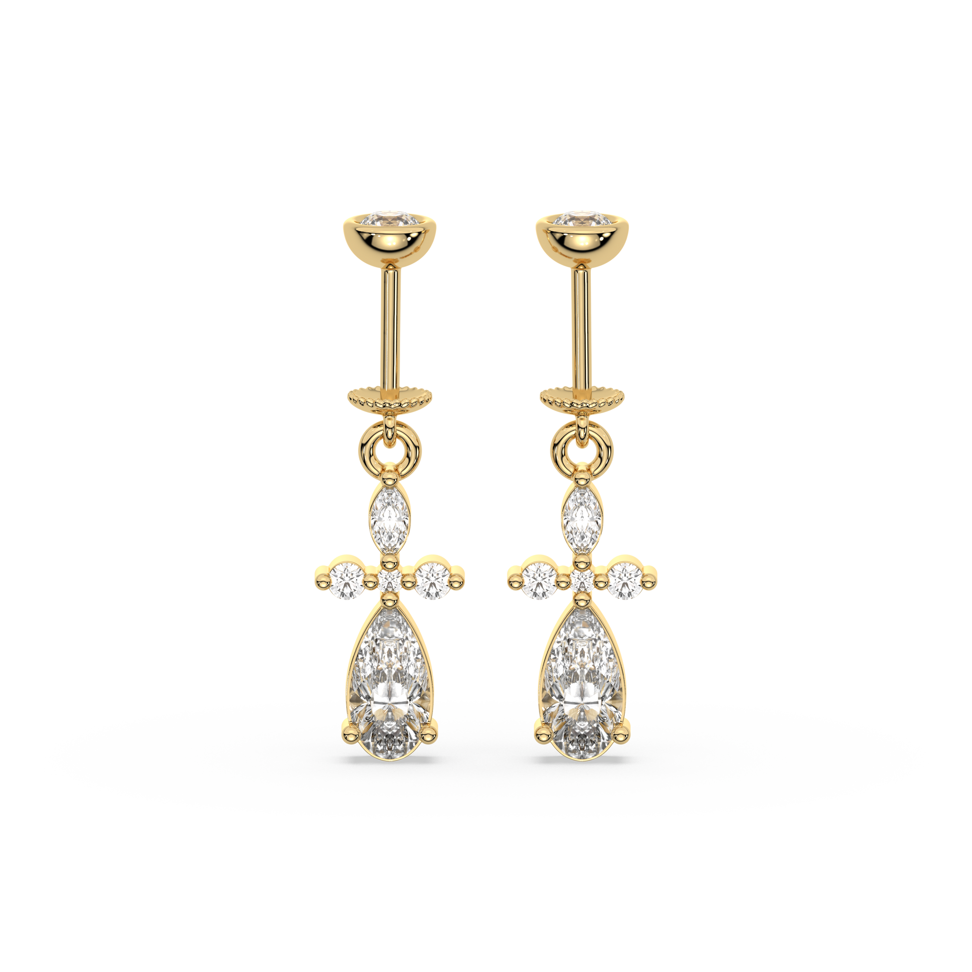 Asymmetric Helix Hanging Earrings crafted from 92.5 sterling silver with premium 5A+ zirconia stones. 14K gold plated for a sophisticated glow, the asymmetrical design adds a modern, fashion-forward touch to your ear stack, ideal for layering with other helix or lobe earrings.