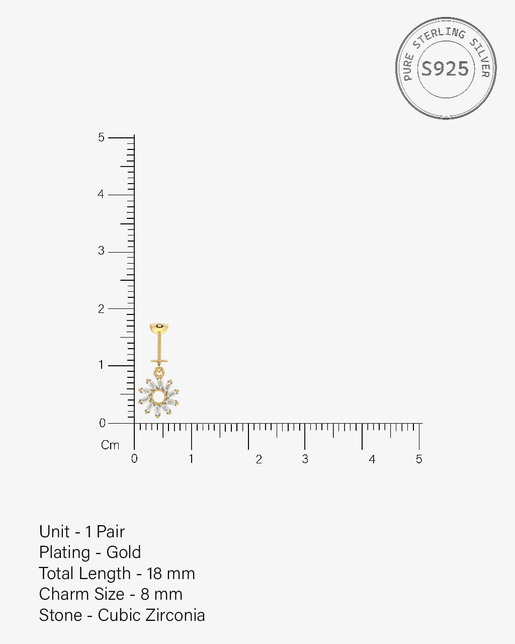 Spiral Baguette Helix Hanging Earrings in 92.5 sterling silver, 14K gold plated with 5A+ zirconia stones. Elegant spiral of baguette stones creates sparkling brilliance, subtle motion, and modern sophistication for helix piercings, ideal for layering, gifting, or elevating a stylish ear jewelry look.