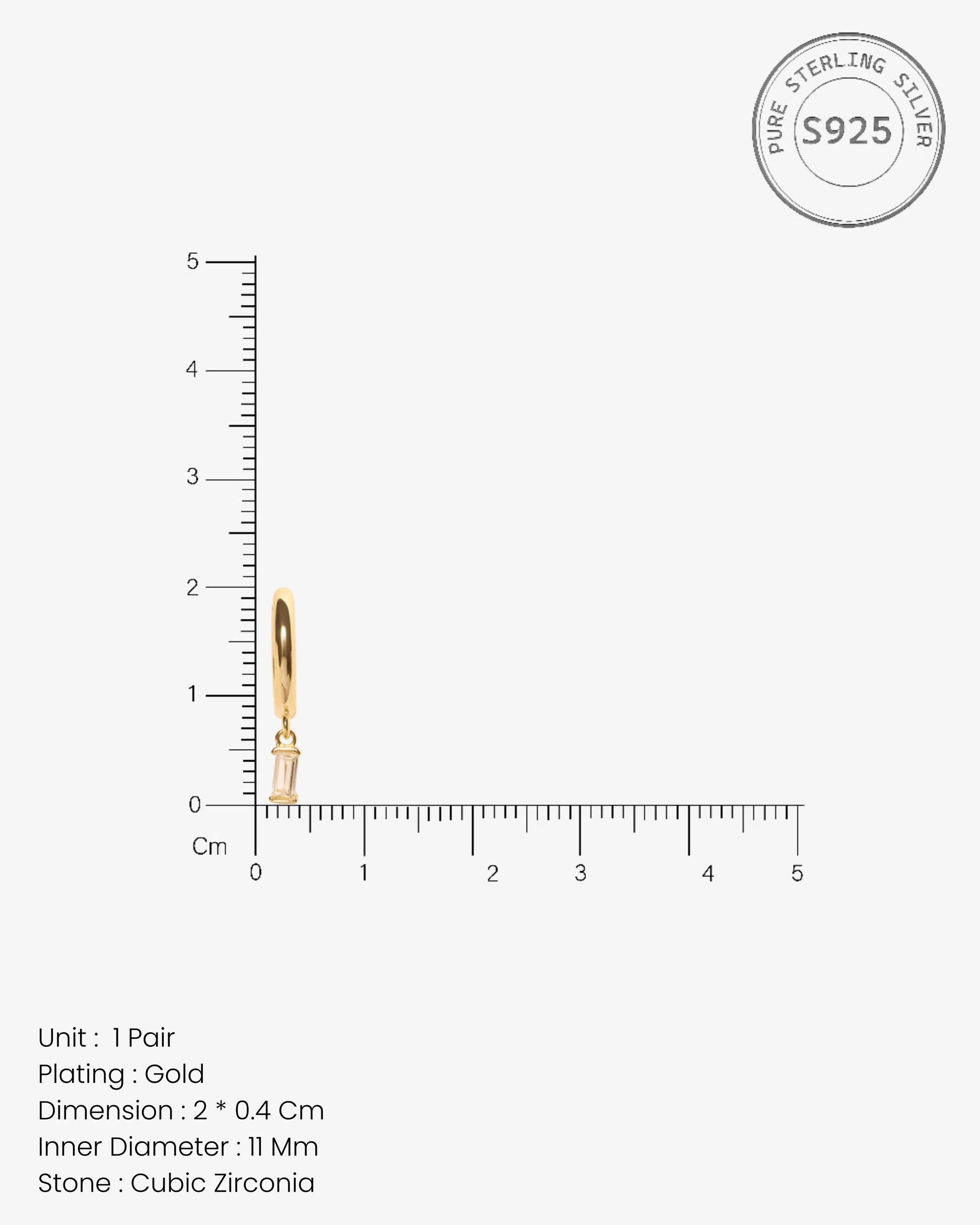 Elegant Bold Baguette charm hoops crafted in 92.5 silver, 14K gold plated with 5A+ zirconia stones. The geometric baguette design delivers a sophisticated shimmer, making these hoops ideal for stacking, gifting, or elevating your everyday ensembles.