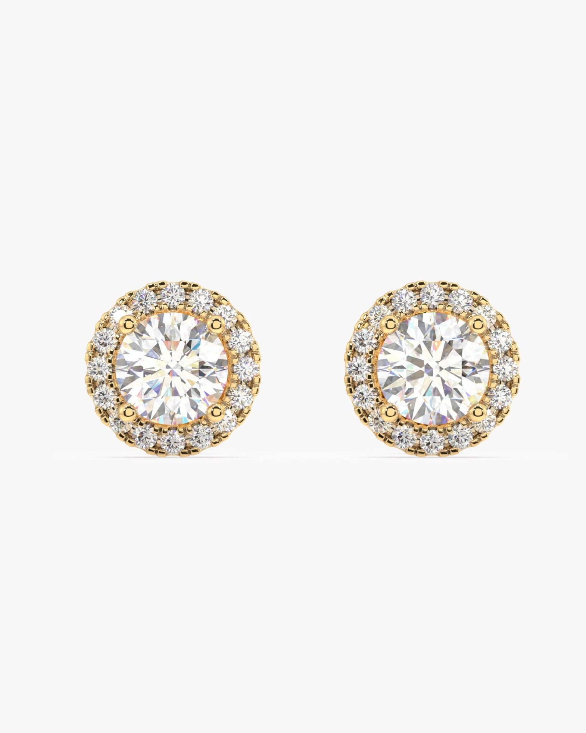 Bold Round Solitaire CZ Lining Stud Earrings crafted in 92.5 silver with 14K gold plating and 5A+ zirconia stones. Sparkling design perfect for statement-making elegance and daily luxury wear.