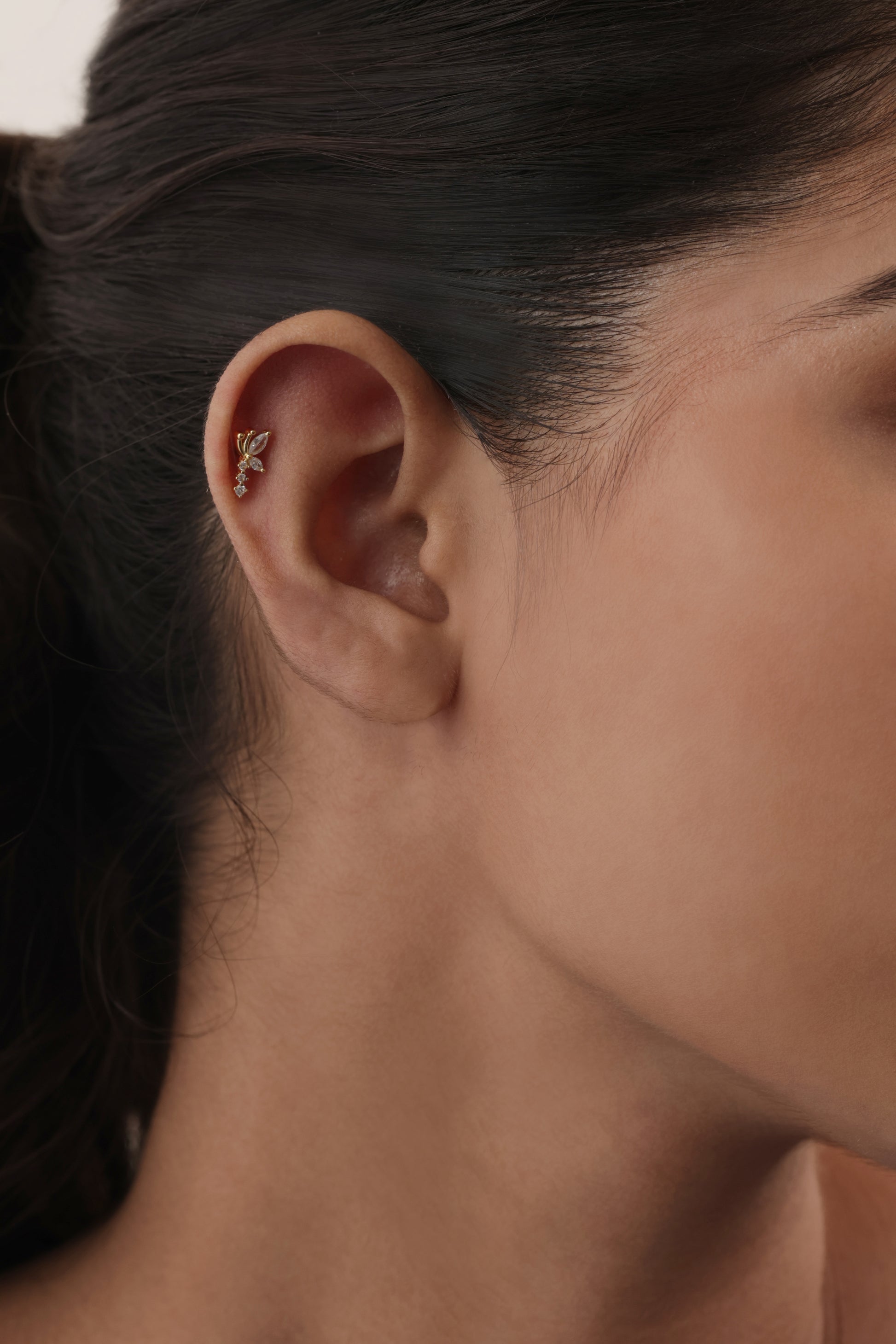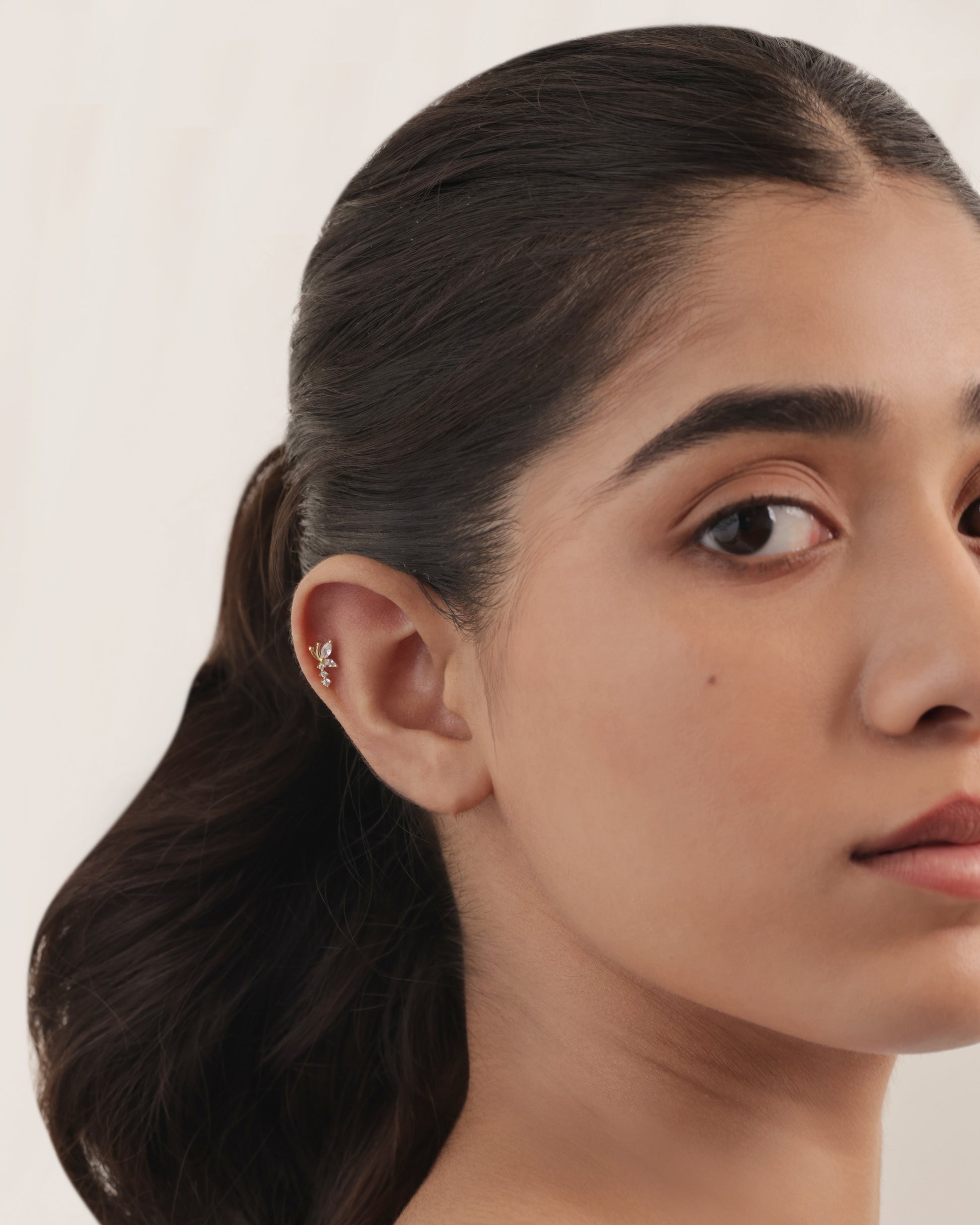 Butterfly Wing Climber Flat Back Stud Earrings in 92.5 sterling silver with 5A+ zirconia stones. Rhodium plated, featuring an elegant wing-inspired climber design for modern feminine style.