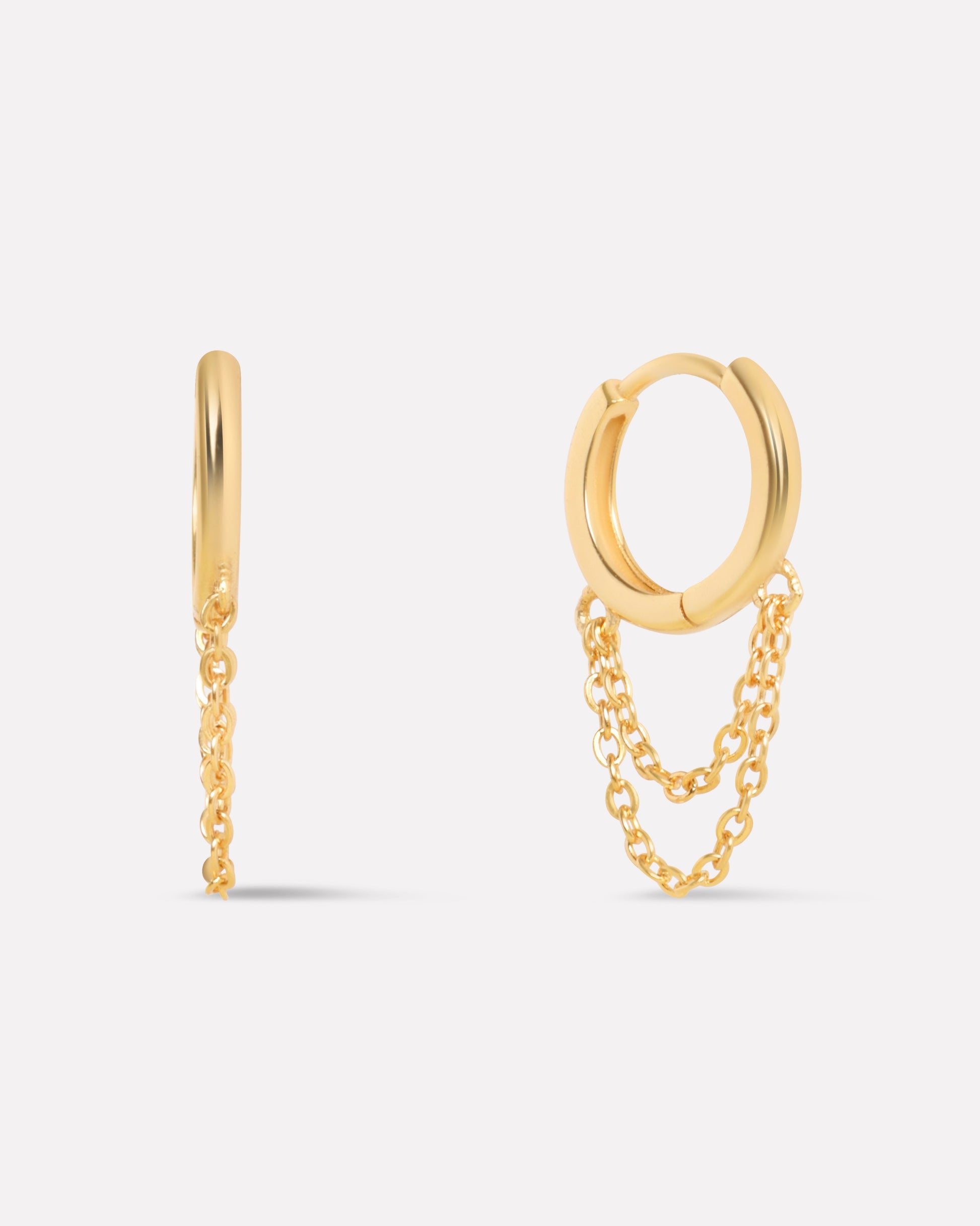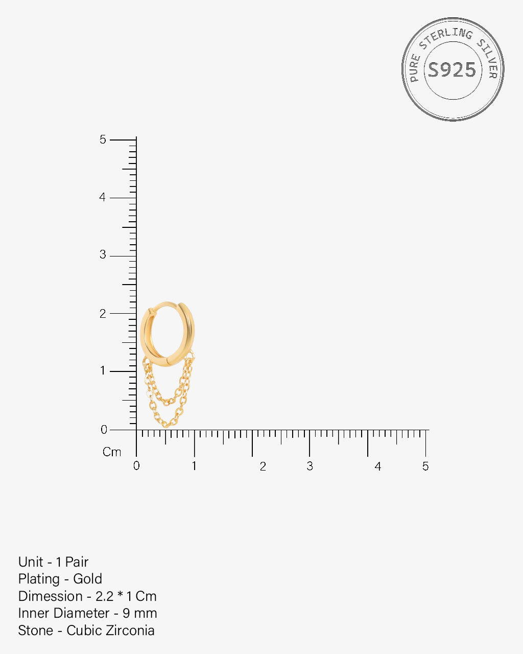 Elegant Chain Dangler hoops in 92.5 silver, 14K gold plated with sparkling 5A+ zirconia stones. The flowing chain design adds graceful movement and shimmer, perfect for stacking, gifting, or making a modern statement in both casual and formal ensembles.