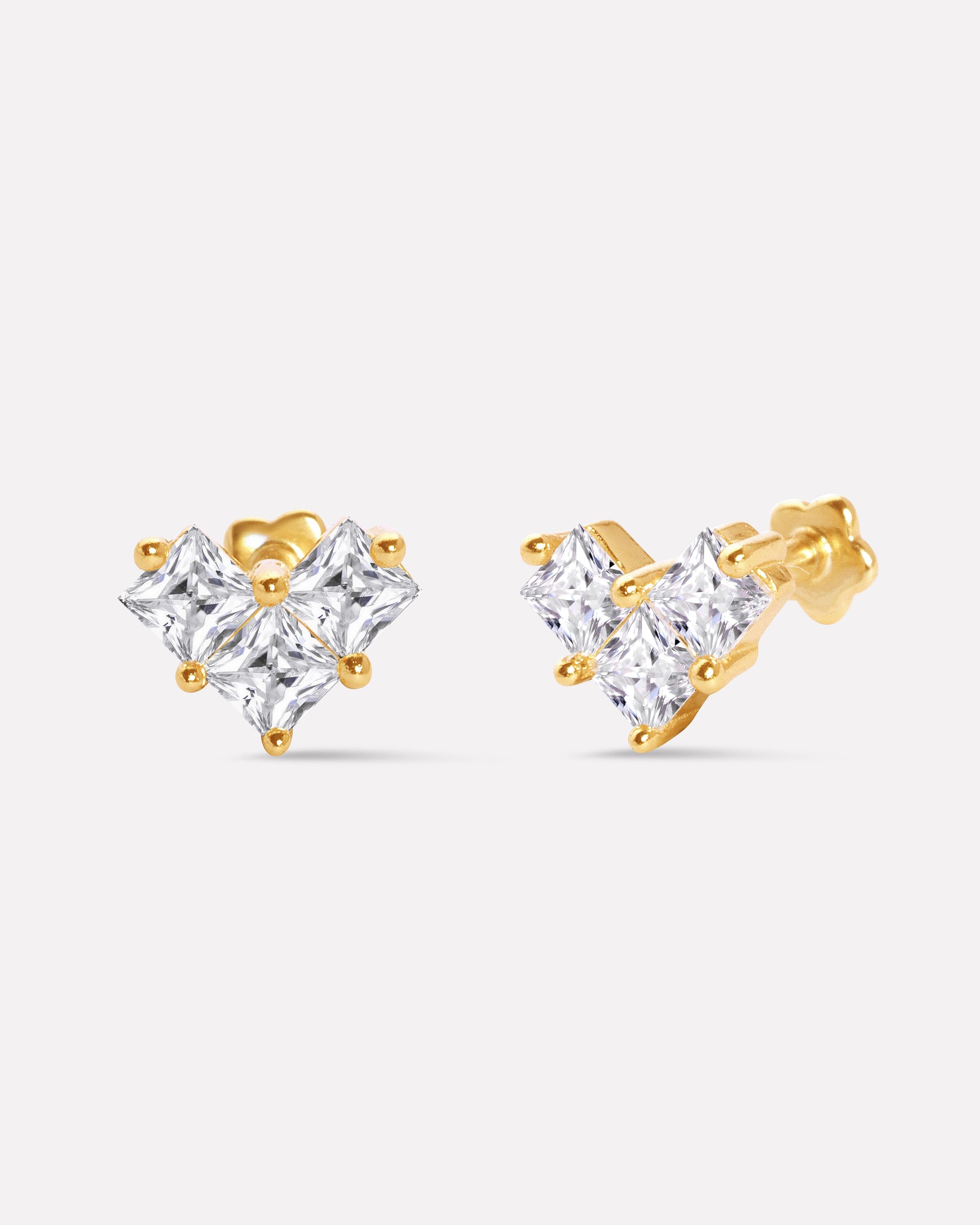 Cupid Flat Back Stud Earrings in 92.5 sterling silver with 5A+ zirconia stones, 14K gold plated. Romantic cupid-inspired design adds sparkle and charm, ideal for gifting or layering.