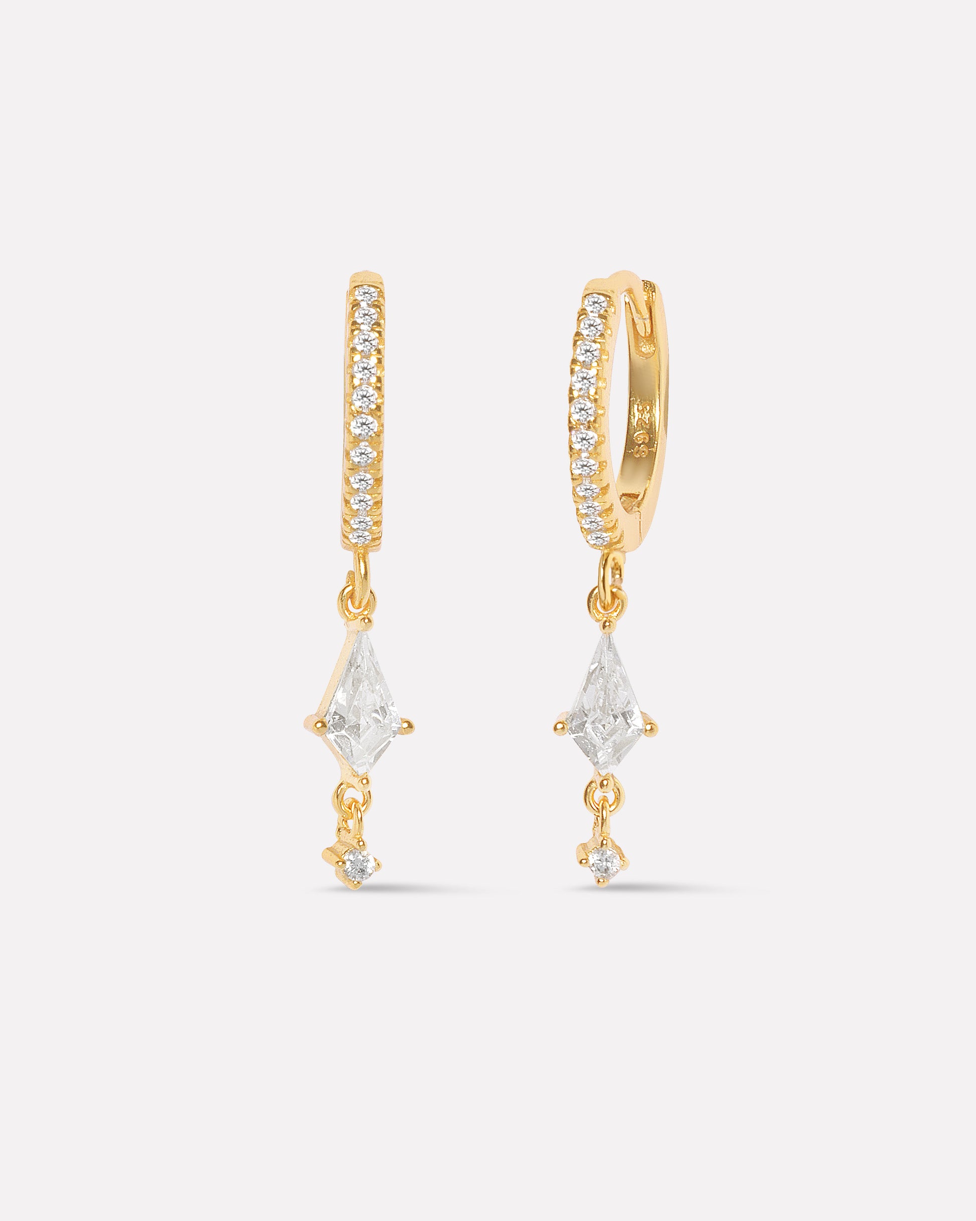 Luxurious Diamond Drop hoops in 92.5 silver with 14K gold plating, set with sparkling 5A+ zirconia stones. The drop design adds graceful movement and shimmer, perfect for elevating formal occasions or adding a refined sparkle to casual looks.