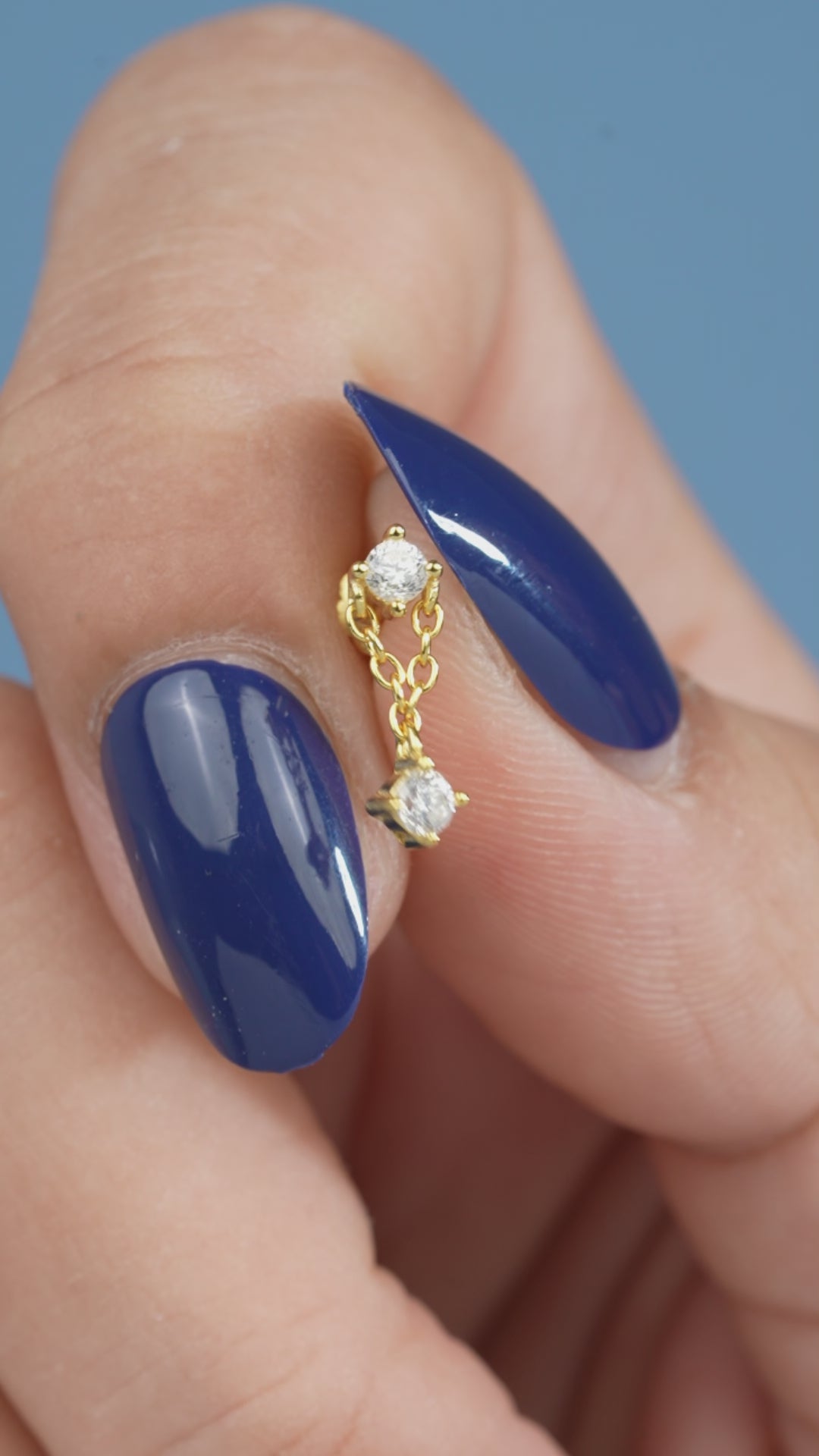 Zirconia Duo Chain Drop Flat Back Stud Earrings