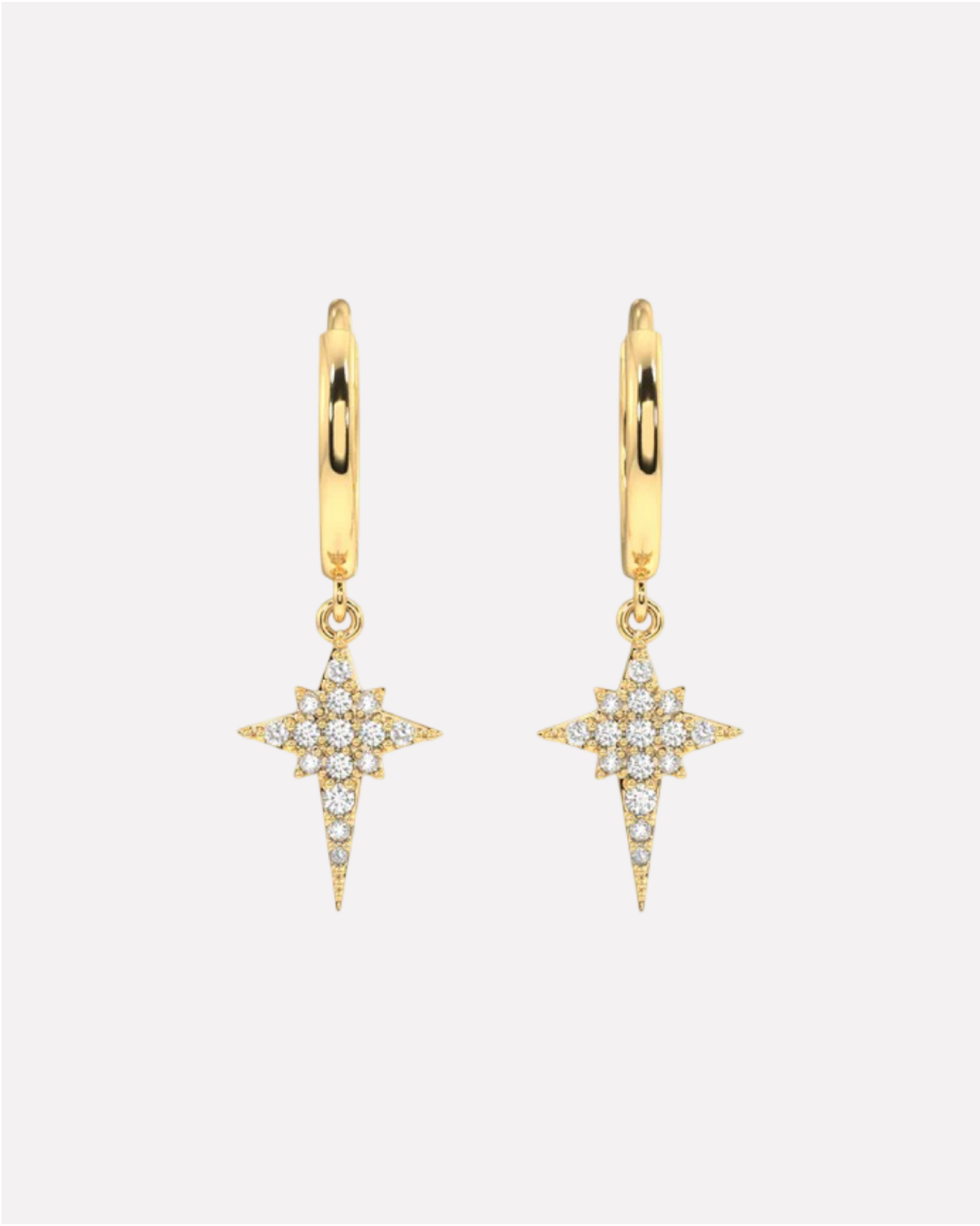 Chic Elongated Star hoops in 92.5 silver with 14K gold plating, adorned with 5A+ zirconia stones. The star-inspired design adds radiant shimmer and modern elegance, perfect for layering, gifting, or adding a luminous touch to any outfit.