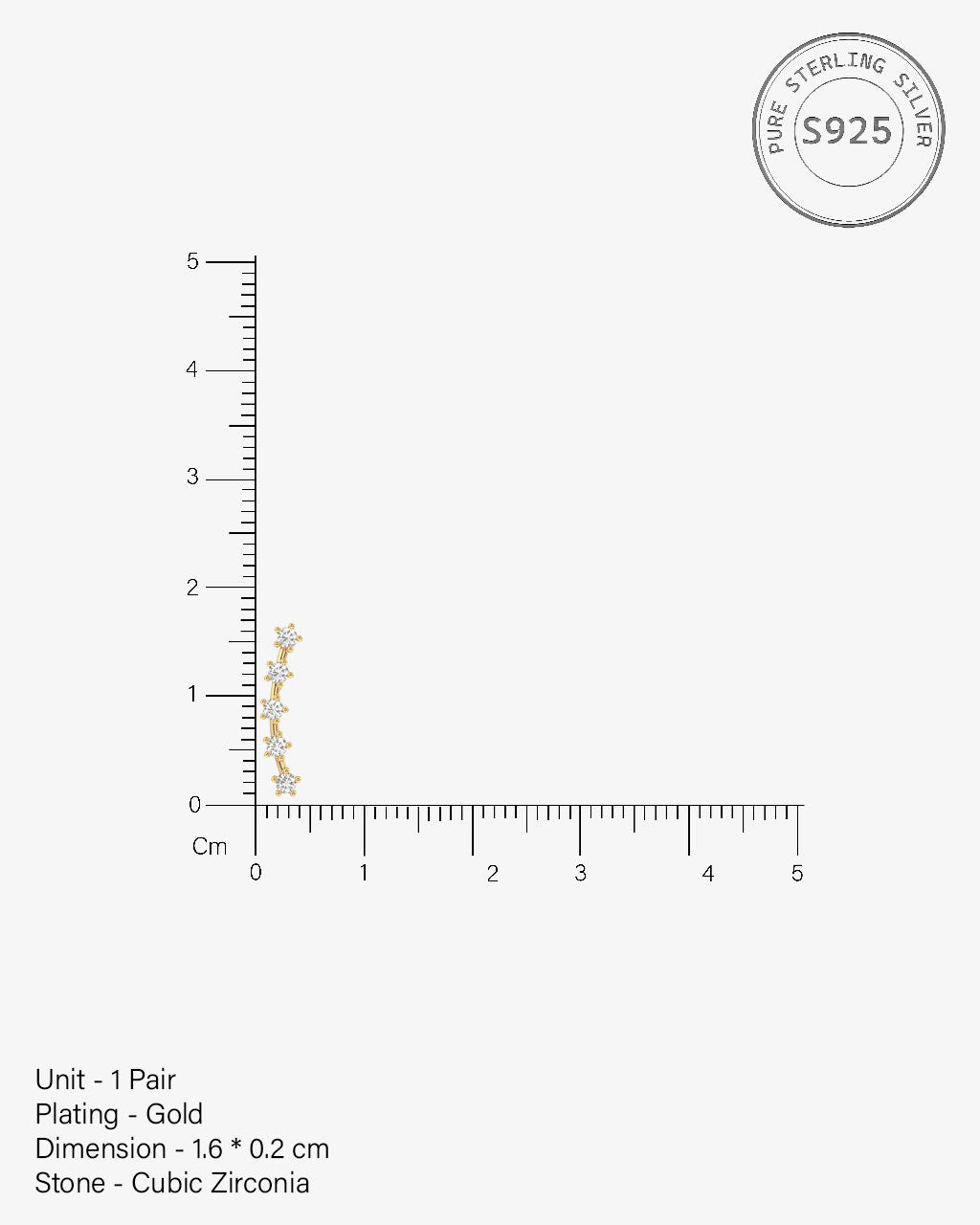 Five Stone Climber Extended Stud Earrings in 92.5 silver, 5A+ zirconia stones, and 14K gold plating deliver sparkling elegance. A stylish climber design that enhances ear styling with modern and versatile sophistication.