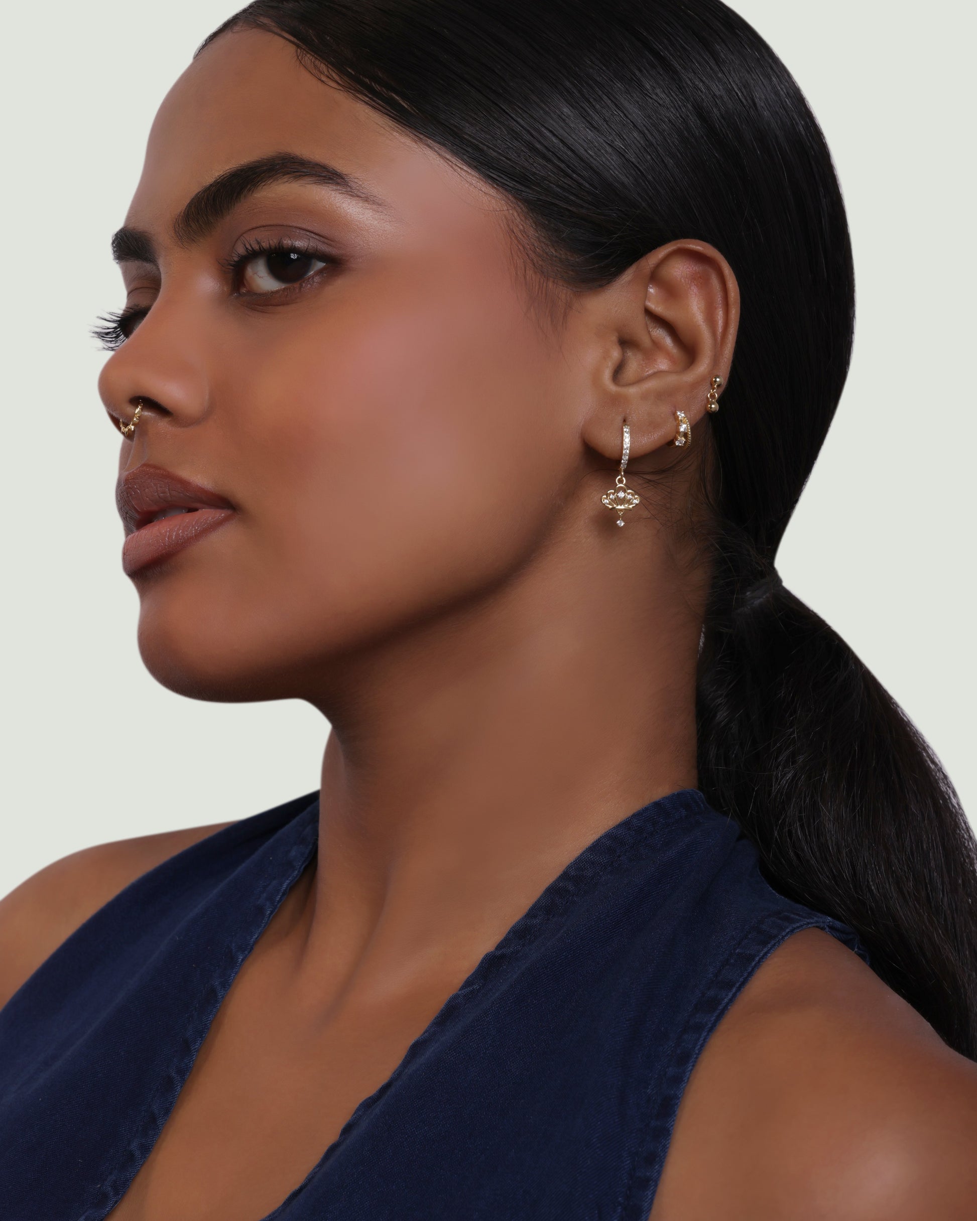 Chic Linked Sparkle hoops in 92.5 silver with 14K gold plating, adorned with sparkling 5A+ zirconia stones. The interlinked design creates shimmer and sophistication, ideal for stacking, gifting, or elevating casual and formal outfits.