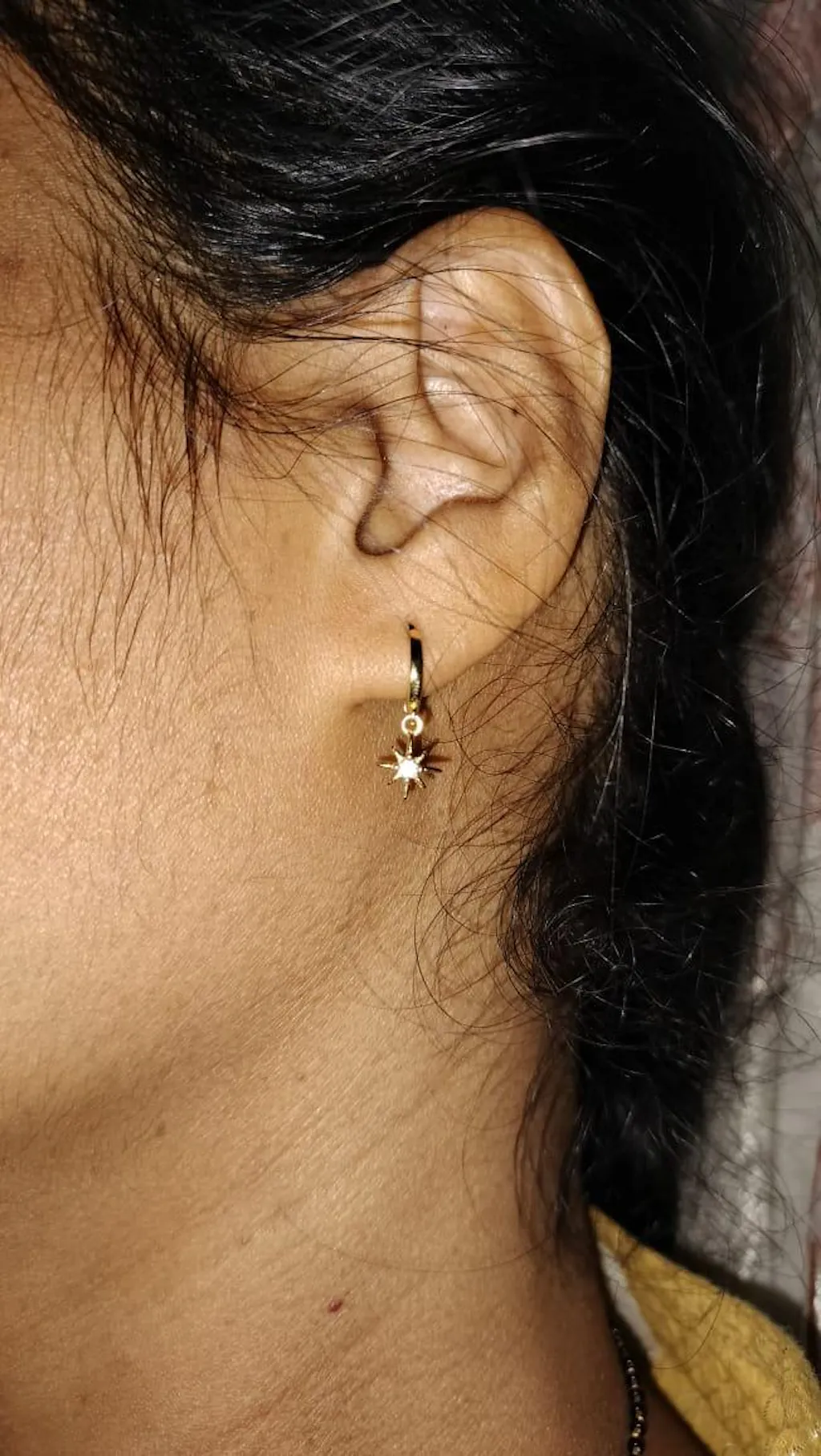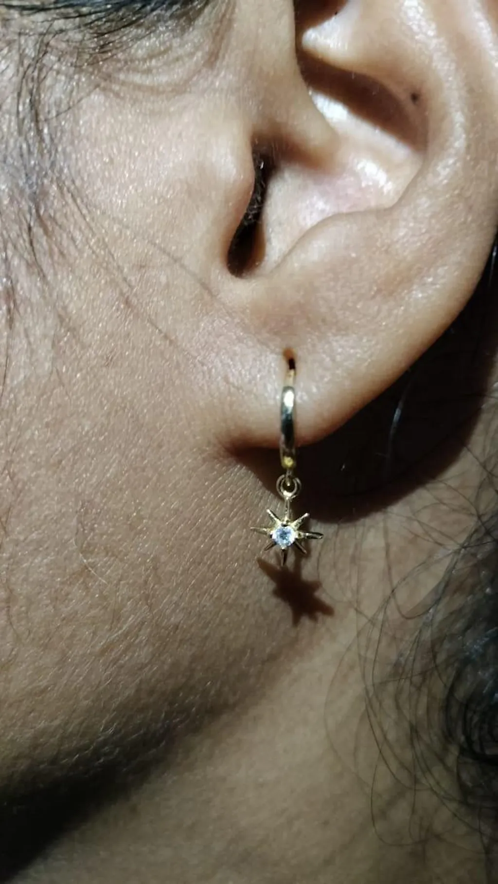 Stylish Mini Sunrays Charm hoops in 92.5 silver with 14K gold plating, set with 5A+ zirconia stones. The sunray-inspired charm adds shimmer and a radiant touch, perfect for layering or gifting.