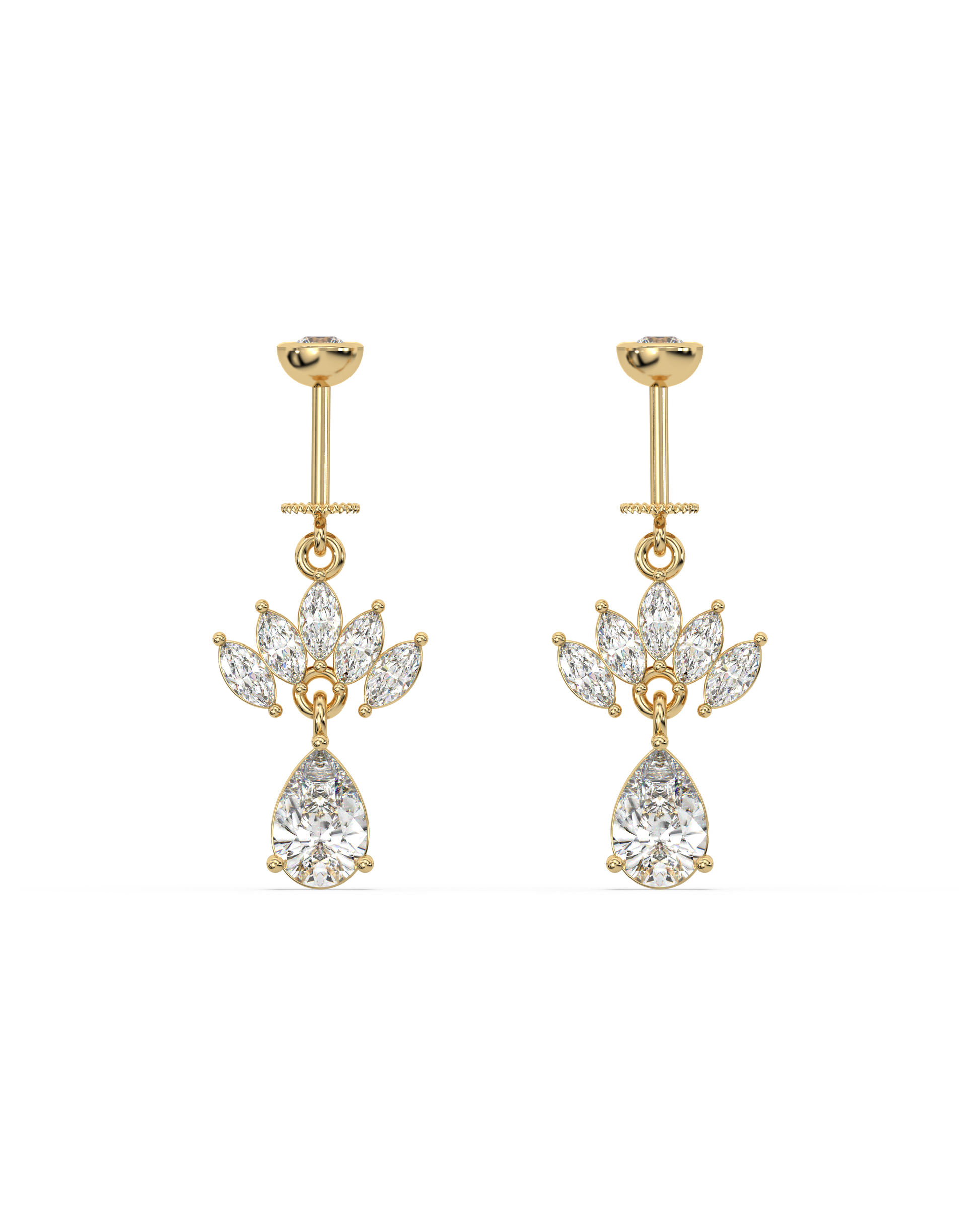 Marquise Crown Drop Helix Hanging Earrings in 92.5 sterling silver, 14K gold plated with sparkling 5A+ zirconia stones. The crown drop design adds refined sparkle, elegance, and charm to helix piercings, perfect for layering, gifting, or creating a luxurious and sophisticated ear look.