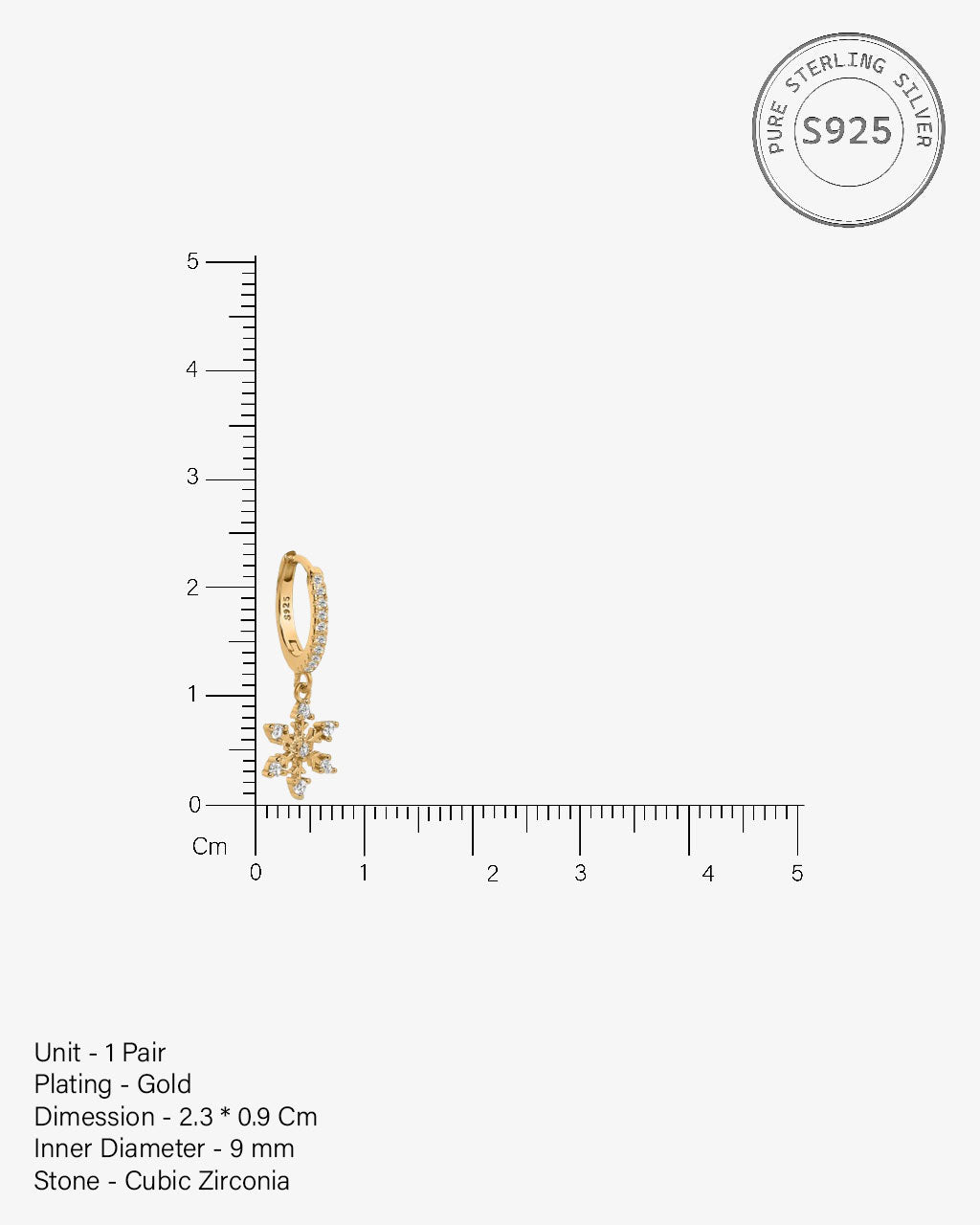 Elegant Minimal Snowflake Charm hoops in 92.5 silver with 14K gold plating, adorned with 5A+ zirconia stones. The subtle snowflake design adds sparkle and charm, ideal for stacking or special occasions.