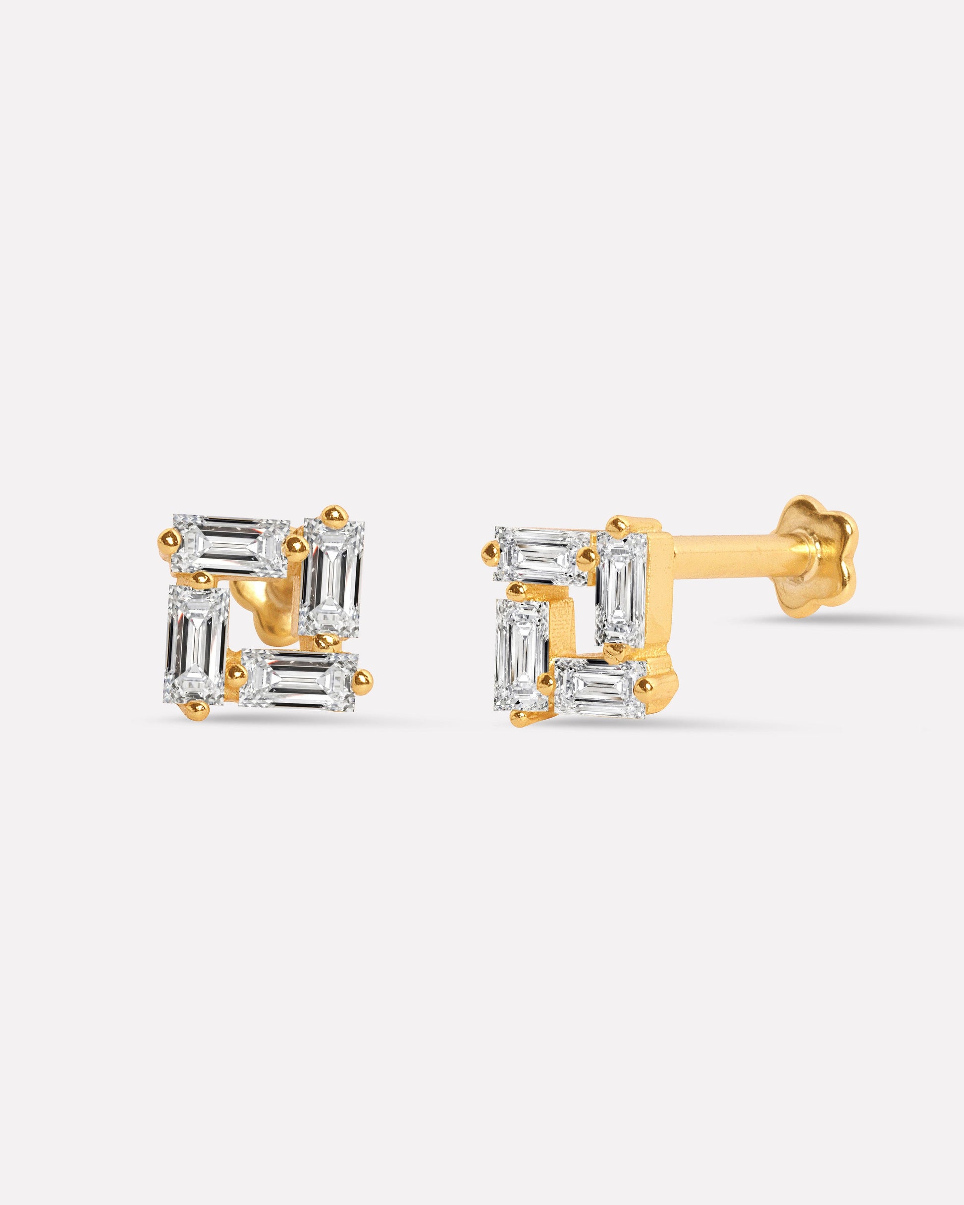 Sparkle Matrix Flat Back Stud Earrings in 92.5 sterling silver, 14K gold plated with 5A+ zirconia stones. Geometric design adds modern sparkle, ideal for gifting or special occasions.
