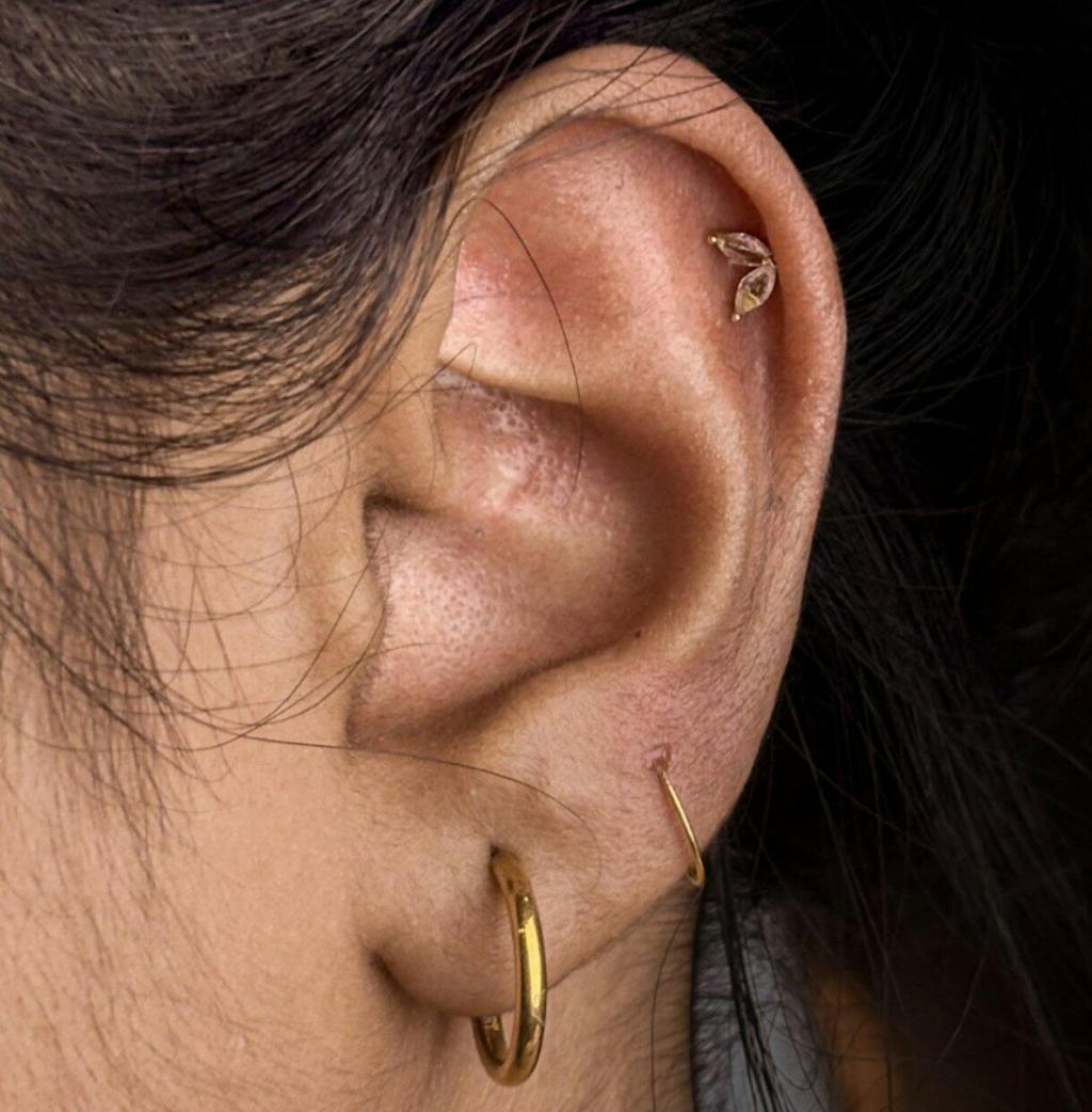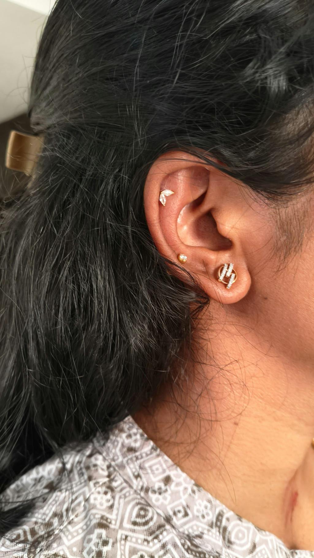 Twin Petals Flat Back Screw Stud Earrings in 92.5 sterling silver, 14K gold plated with 5A+ zirconia stones. Dual-petal design adds sparkle and charm, perfect for gifting or layering.