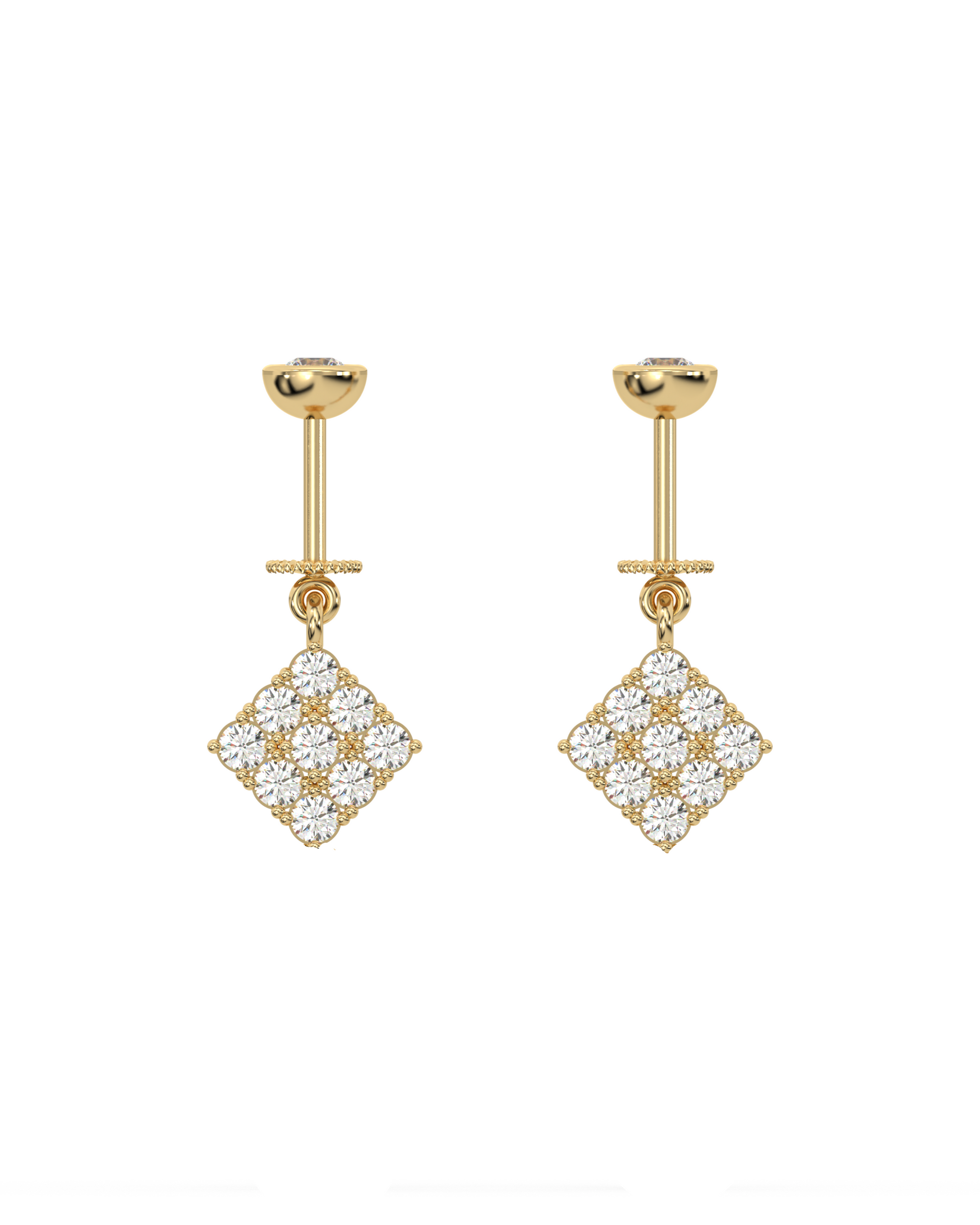 Zirconia Square Helix Earrings in 92.5 sterling silver, 14K gold plated with 5A+ zirconia stones. Geometric square design studded with zirconia sparkles elegantly, offering contemporary sophistication, graceful movement, and refined charm for helix piercings or layered ear jewelry.