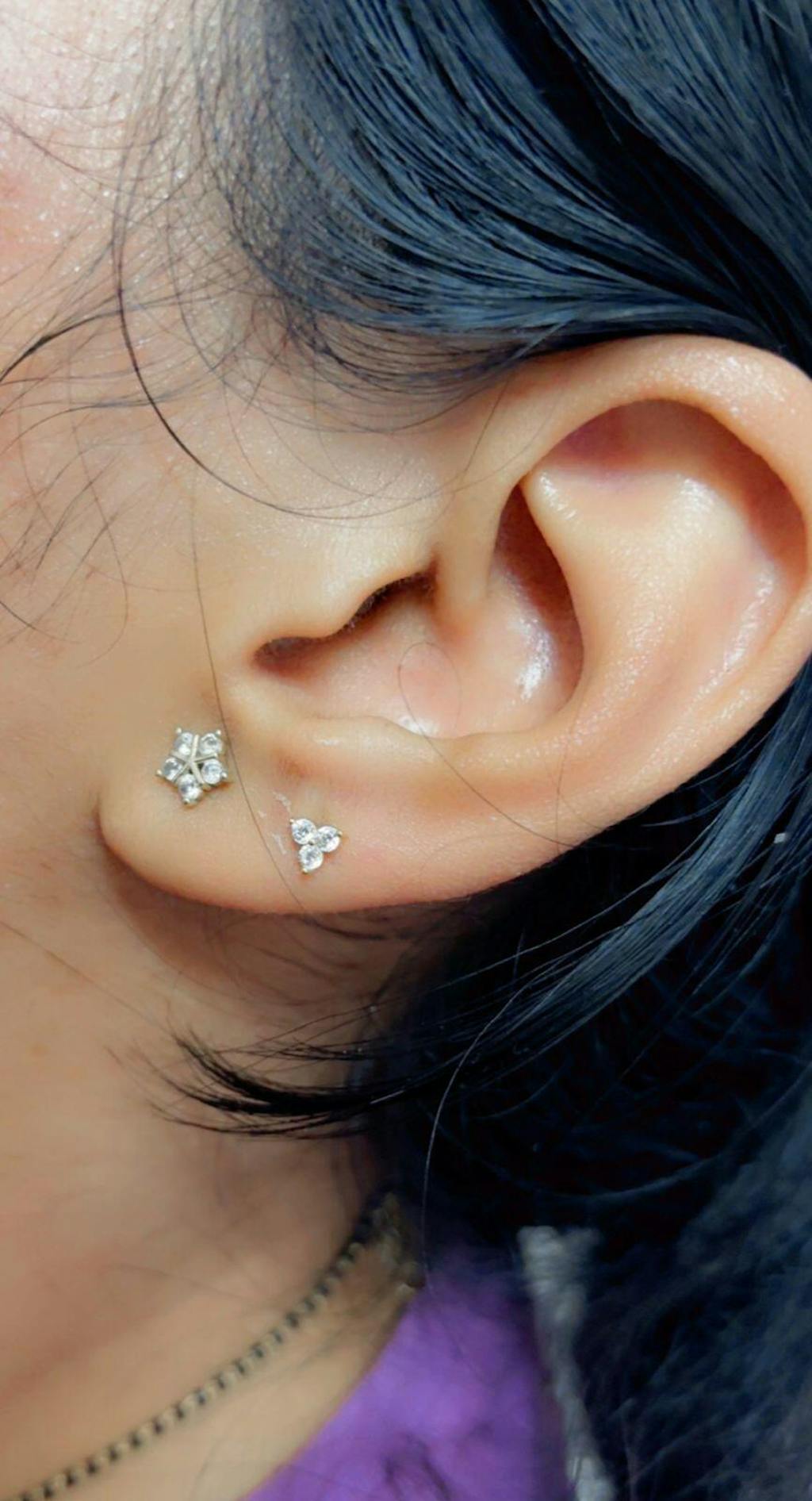 Radiant Tri Zirconia Flat Back Screw Stud Earrings