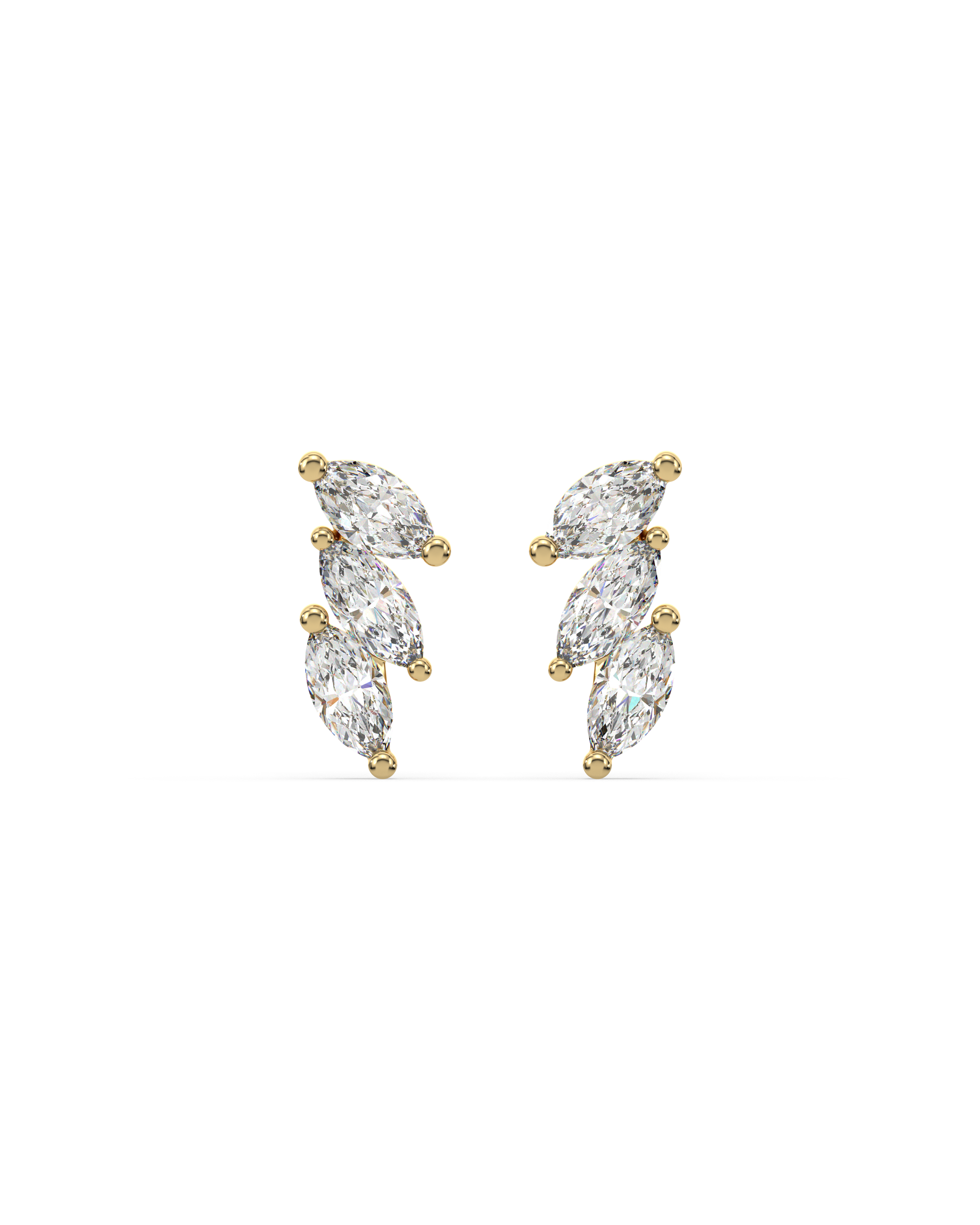 Tri Marquise Stone Climber Stud Earrings in 92.5 silver with 14K gold plating. Elegant three-stone design enhances any outfit with sparkle, perfect for gifting or festive occasions.