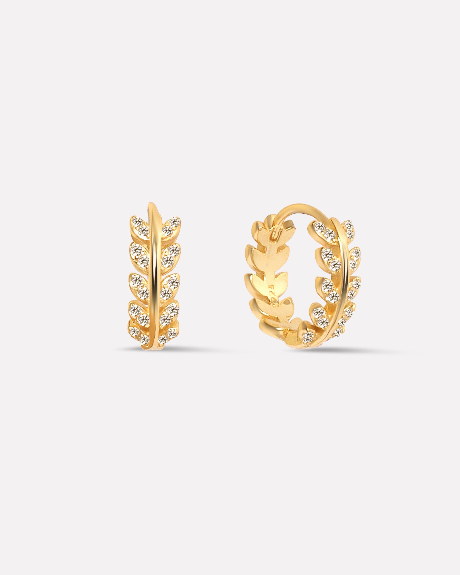 Delicate Zirconia Leaf hoops, 10MM in 92.5 silver, 14K gold plated and set with 5A+ zirconia stones. The intricate leaf motif adds nature-inspired charm and subtle sparkle to your look.