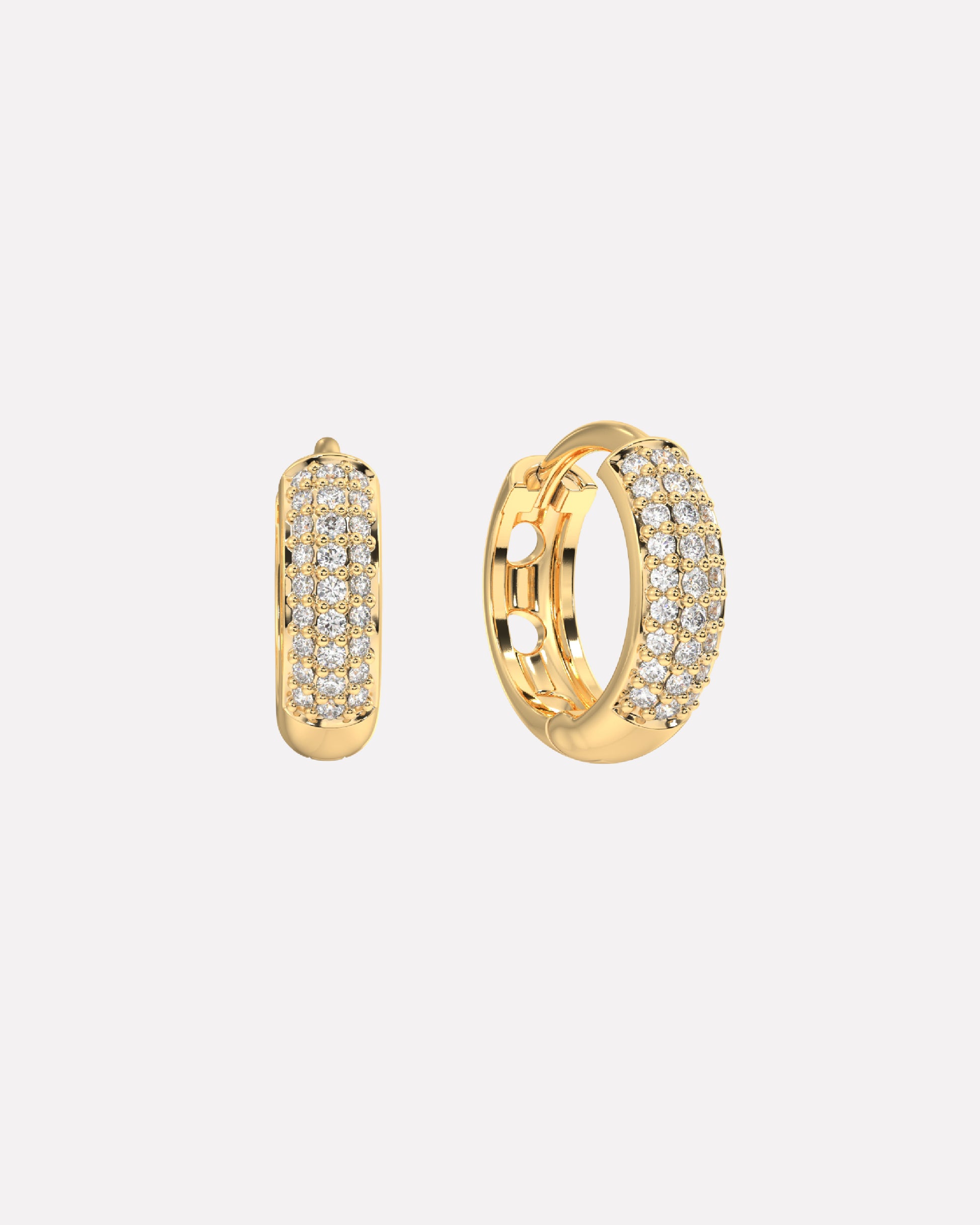 Add timeless charm to your jewelry collection with these 14K Gold Plated Zirconia Thick Hoops. Made with 92.5 silver and decorated with premium 5A+ zirconia stones, they are available in multiple sizes for flexible styling. These hoops are perfect for stacking, layering, or making a bold statement on their own. Their luxurious gold finish complements any skin tone and elevates both casual and formal ensembles with sparkling elegance.