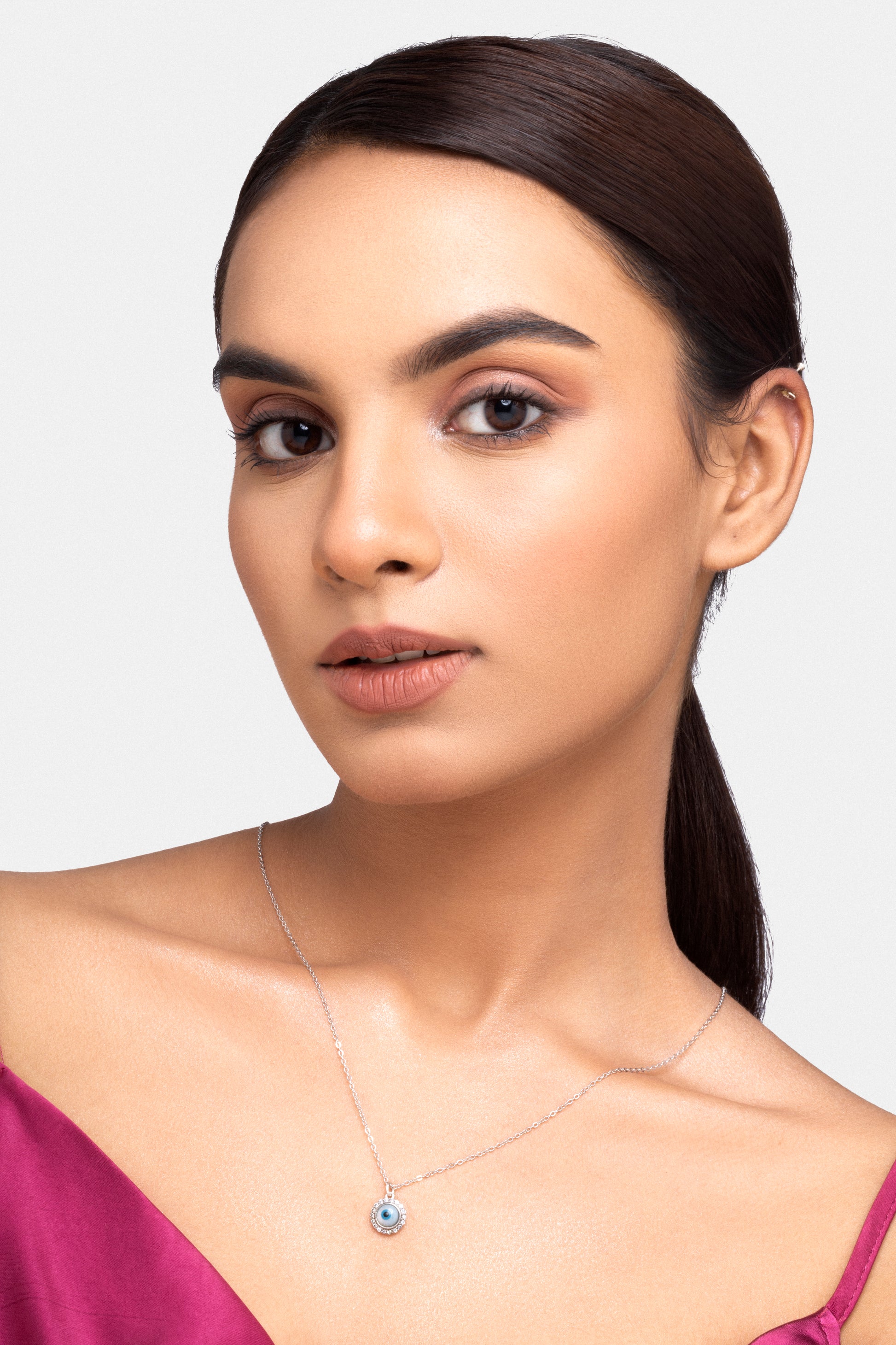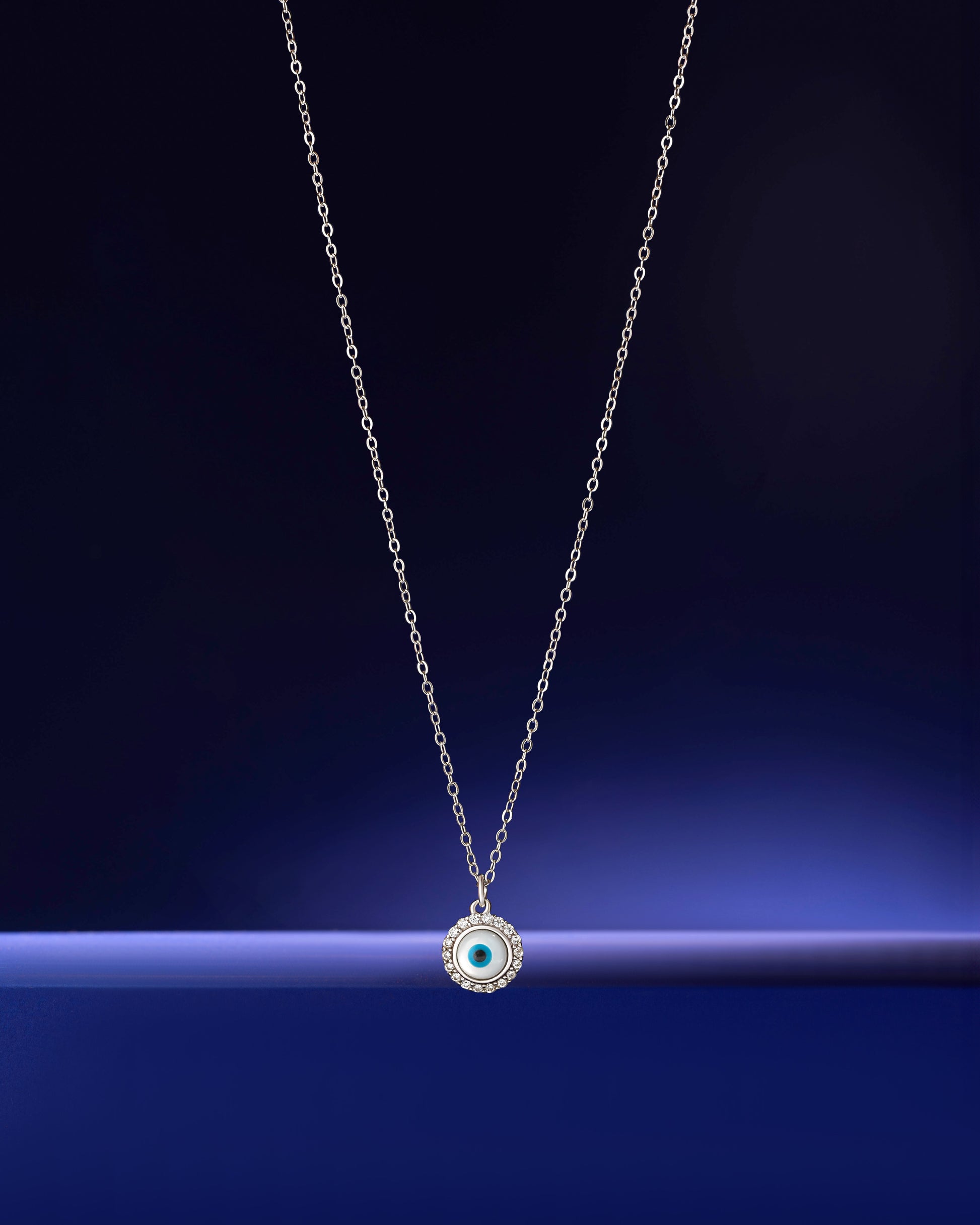 Zircon Pavé Evil Eye Necklace in 92.5 sterling silver with 5A+ zirconia stones. Rhodium plated for lasting sparkle, this protective charm combines style with symbolism, ideal for gifting or adding mystical elegance to daily wear.