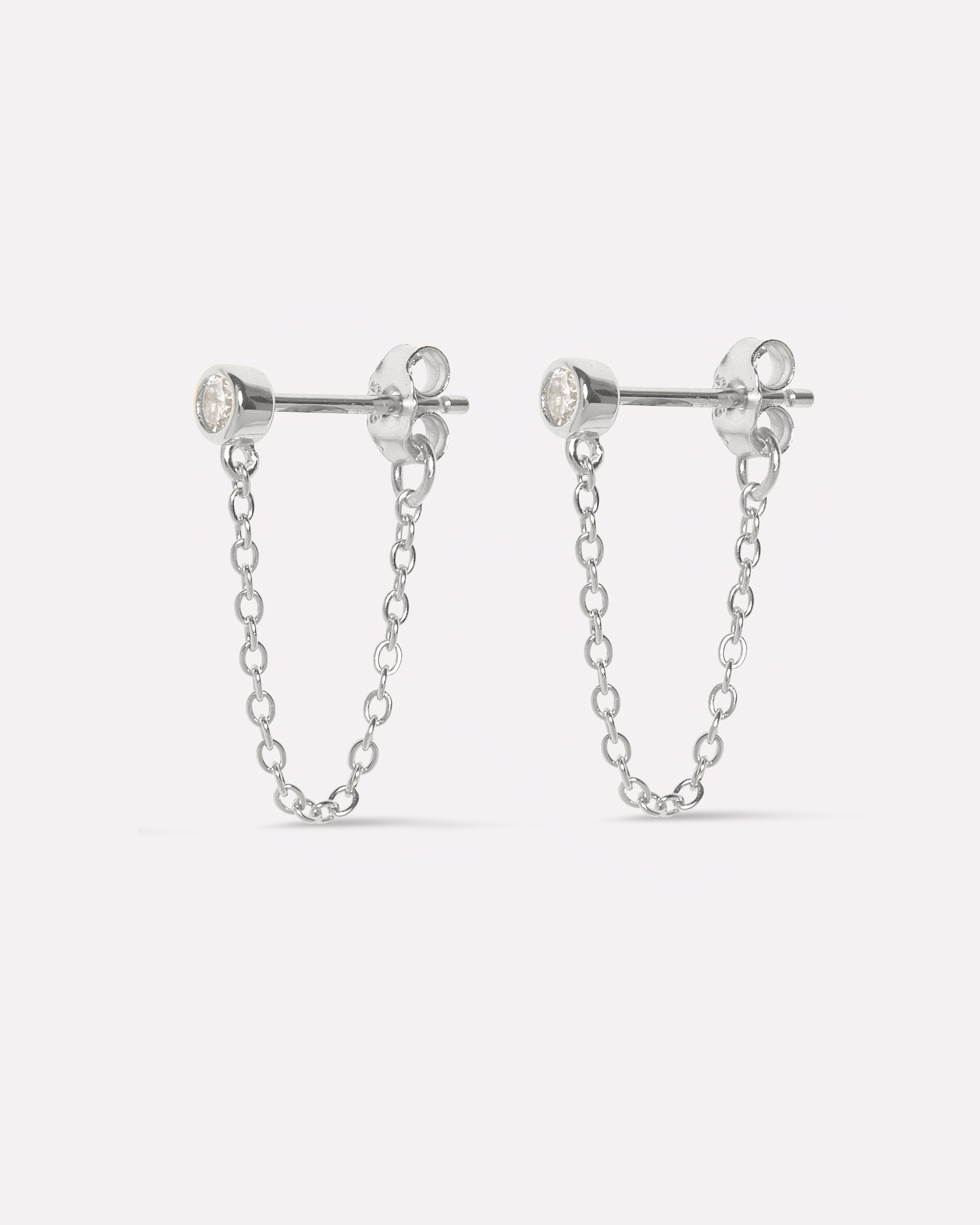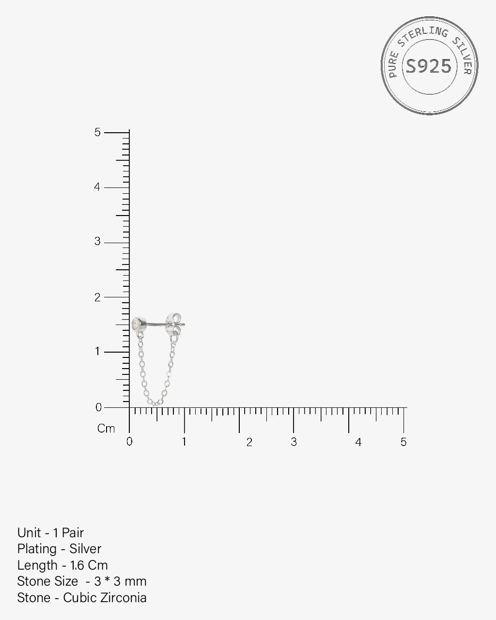 Clarisse Chain Connector Earrings in 92.5 sterling silver with 5A+ zirconia stones. Rhodium plated for lasting brilliance, these elegant chain connector earrings combine modern design and sparkling charm, perfect for layering, everyday wear, or gifting.
