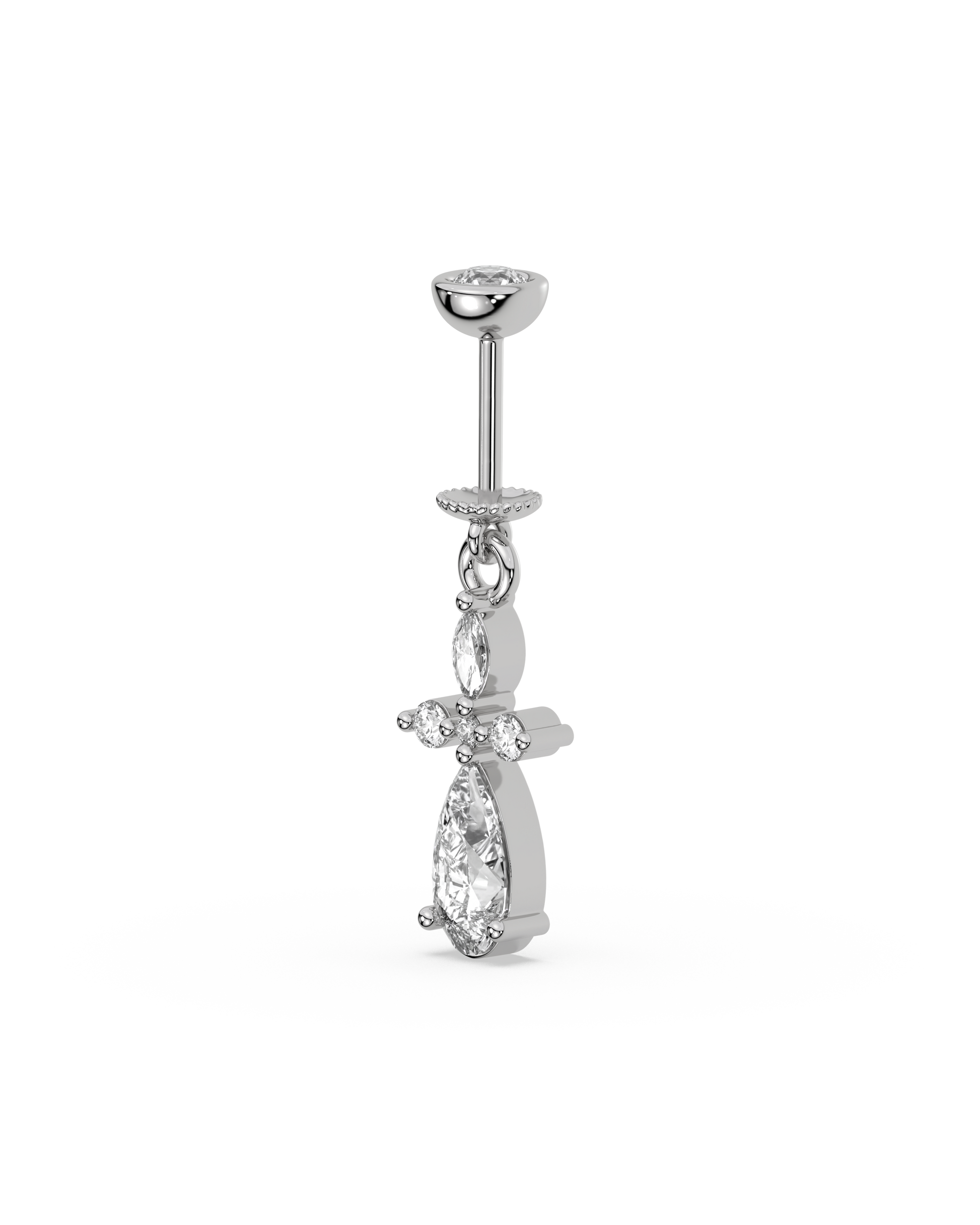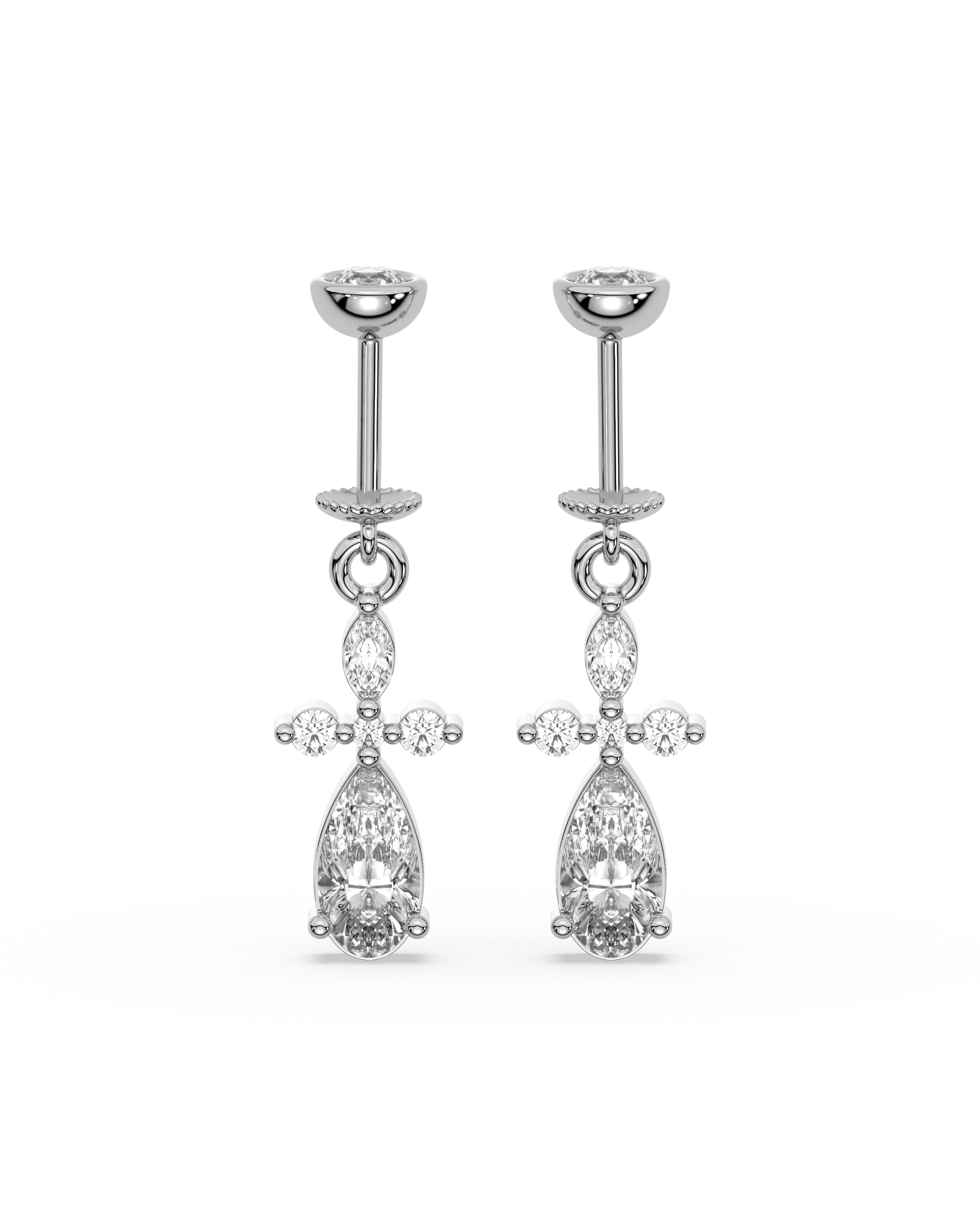 Asymmetric Helix Hanging Earrings in 92.5 sterling silver with sparkling 5A+ zirconia stones. Rhodium plated for durability and shine, this modern asymmetrical design makes a chic statement for helix piercings and is perfect for styling with layered earrings or gifting.