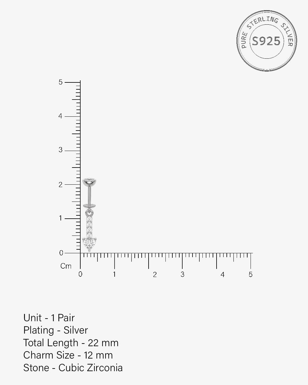 Zirconia Bar Helix Earrings in 92.5 sterling silver with rhodium plating and 5A+ zirconia stones. Minimalist bar design adorned with sparkling zirconia offers contemporary elegance, delicate movement, and refined sparkle for helix piercings or layered ear jewelry looks.