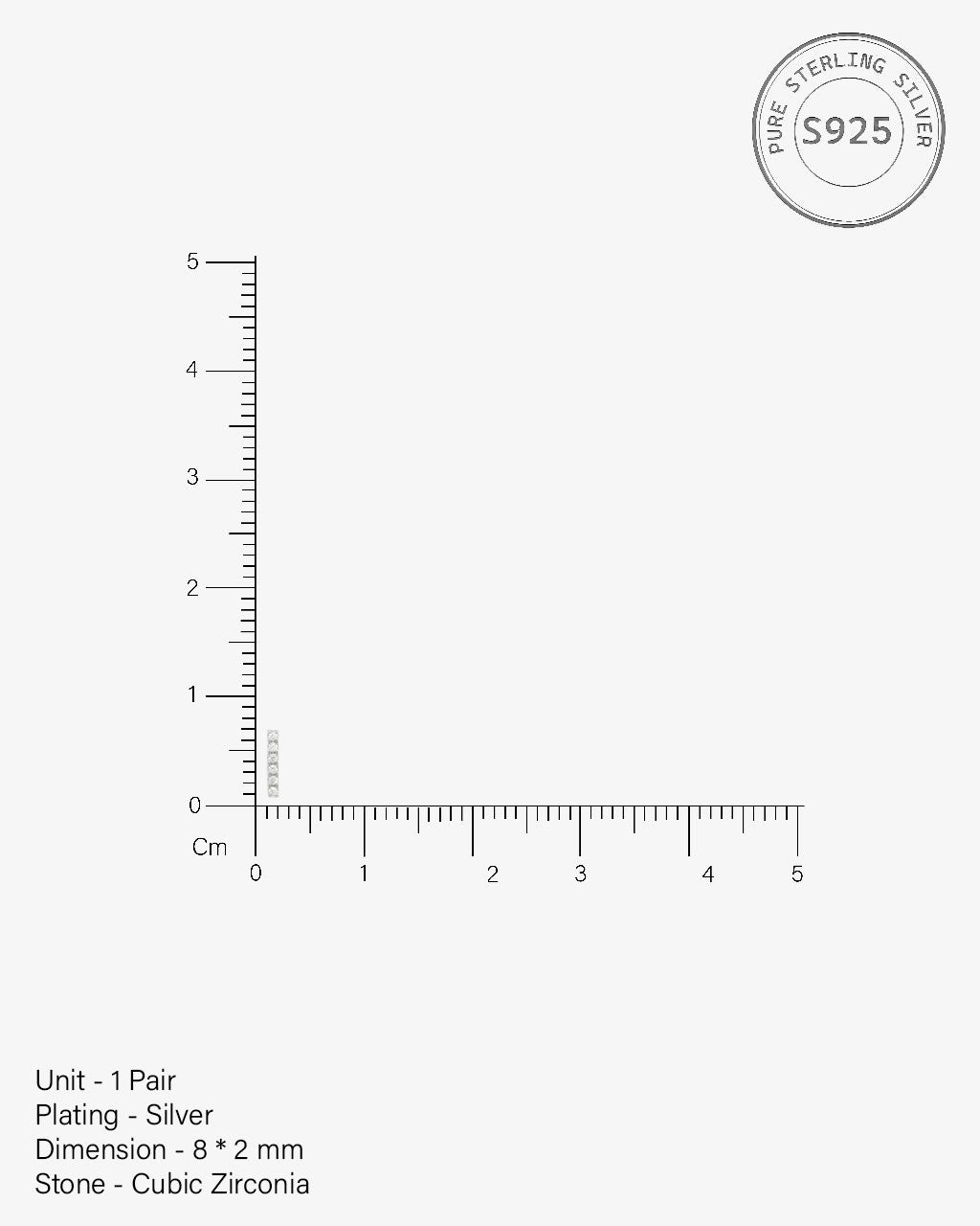 Minimal Zirconia Bar Stud Earrings in 92.5 silver with rhodium plating and 5A+ zirconia stones. A sleek bar silhouette adorned with subtle sparkle, perfect for modern everyday jewelry styling.