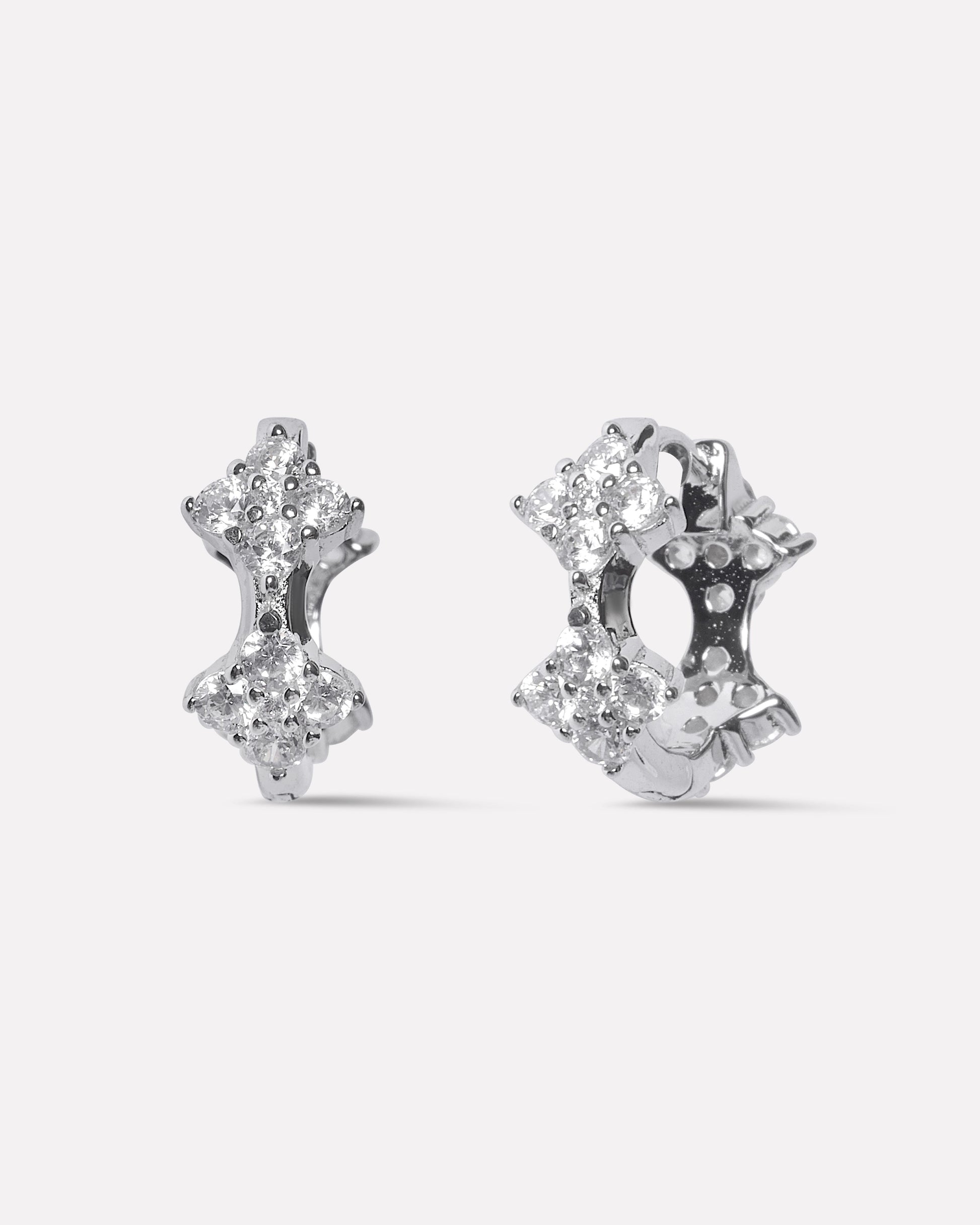 Graceful BloomiQ Crystal hoop earrings in 92.5 silver, rhodium plated and encrusted with 5A+ zirconia stones. Their sparkling design captures light beautifully, offering refined elegance that elevates casual looks or complements sophisticated evening wear.