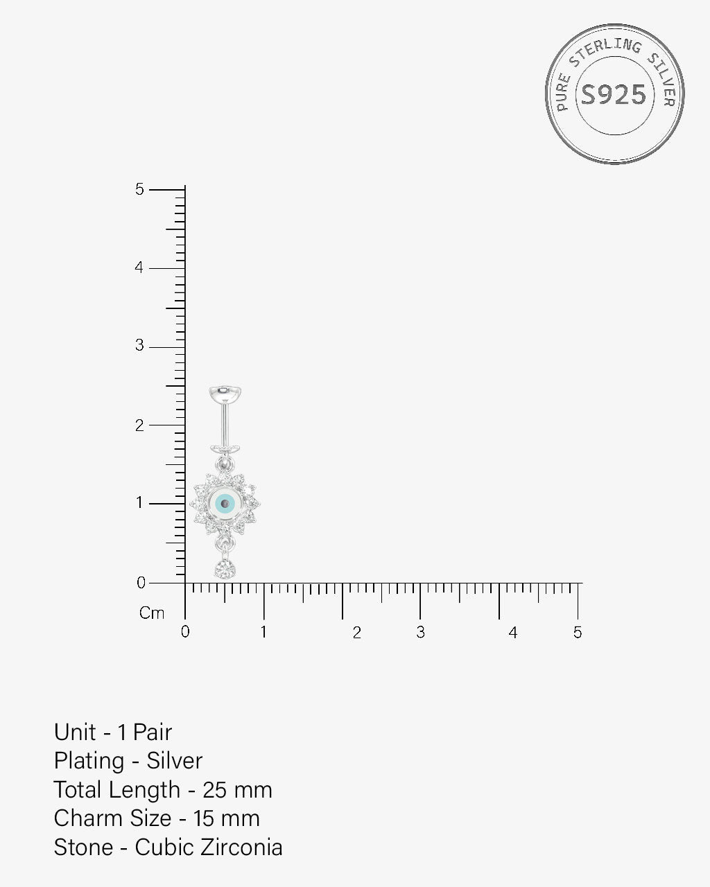 Blue White Enamel Eye Helix Hanging Earrings in 92.5 sterling silver with sparkling 5A+ zirconia stones. Rhodium plated, the protective enamel eye design adds style, charm, and symbolism, perfect for layering with other helix piercings or gifting as a unique statement piece.