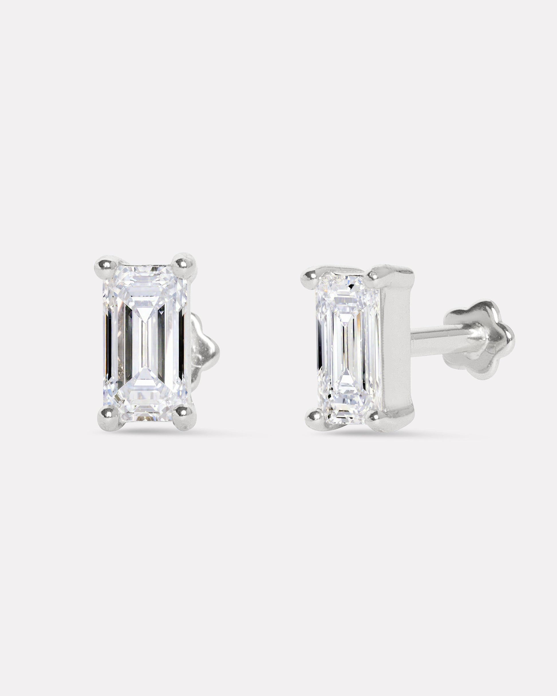 Boxy Flat Back Stud Earrings in 92.5 sterling silver with 5A+ zirconia stones. Rhodium plated, featuring a modern geometric design for everyday elegance, layering, or gifting.