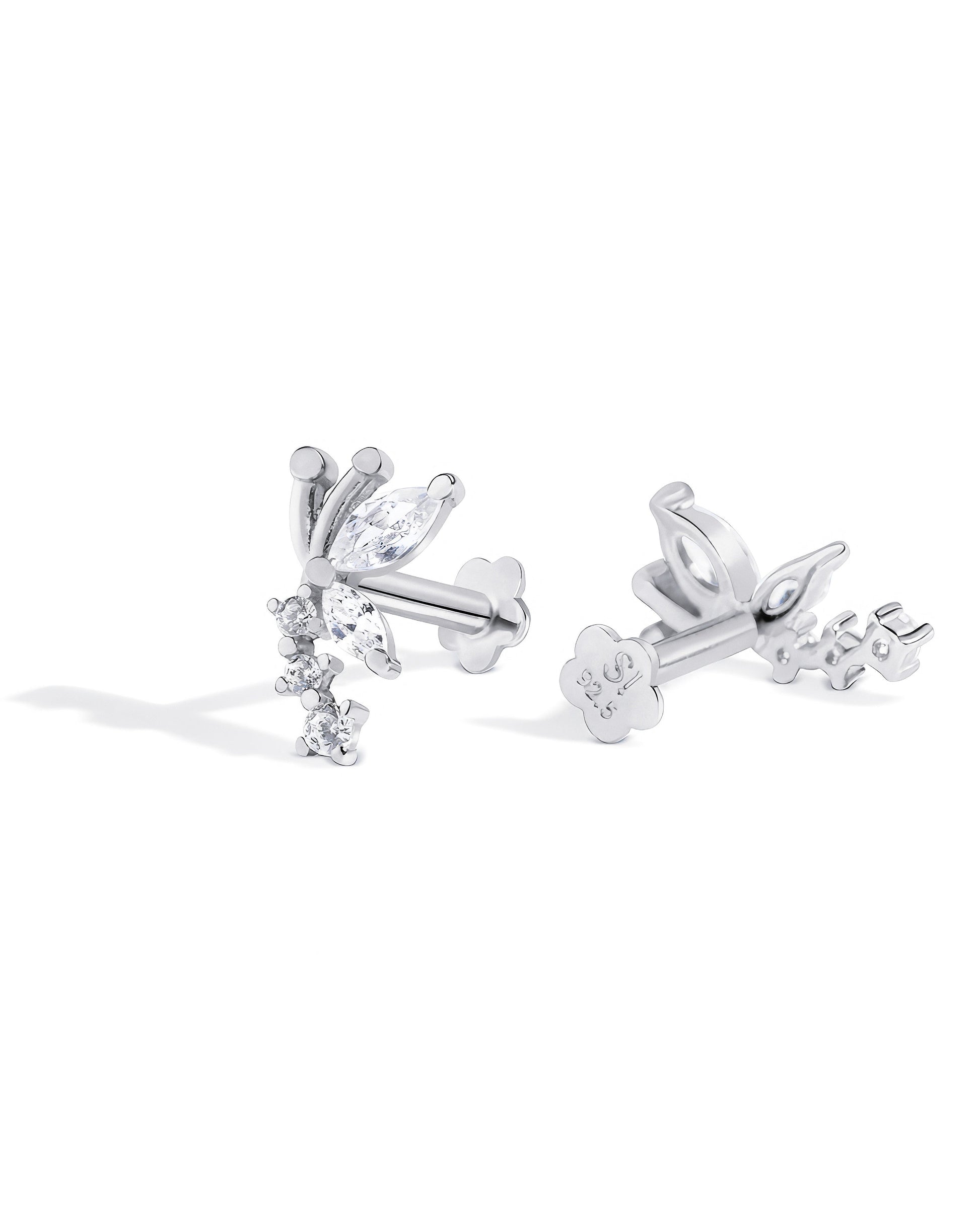 Butterfly Wing Climber Flat Back Stud Earrings in 92.5 sterling silver with 5A+ zirconia stones, 14K gold plated. Wing-inspired climber design adds sparkle and sophistication, ideal for gifting or layering.