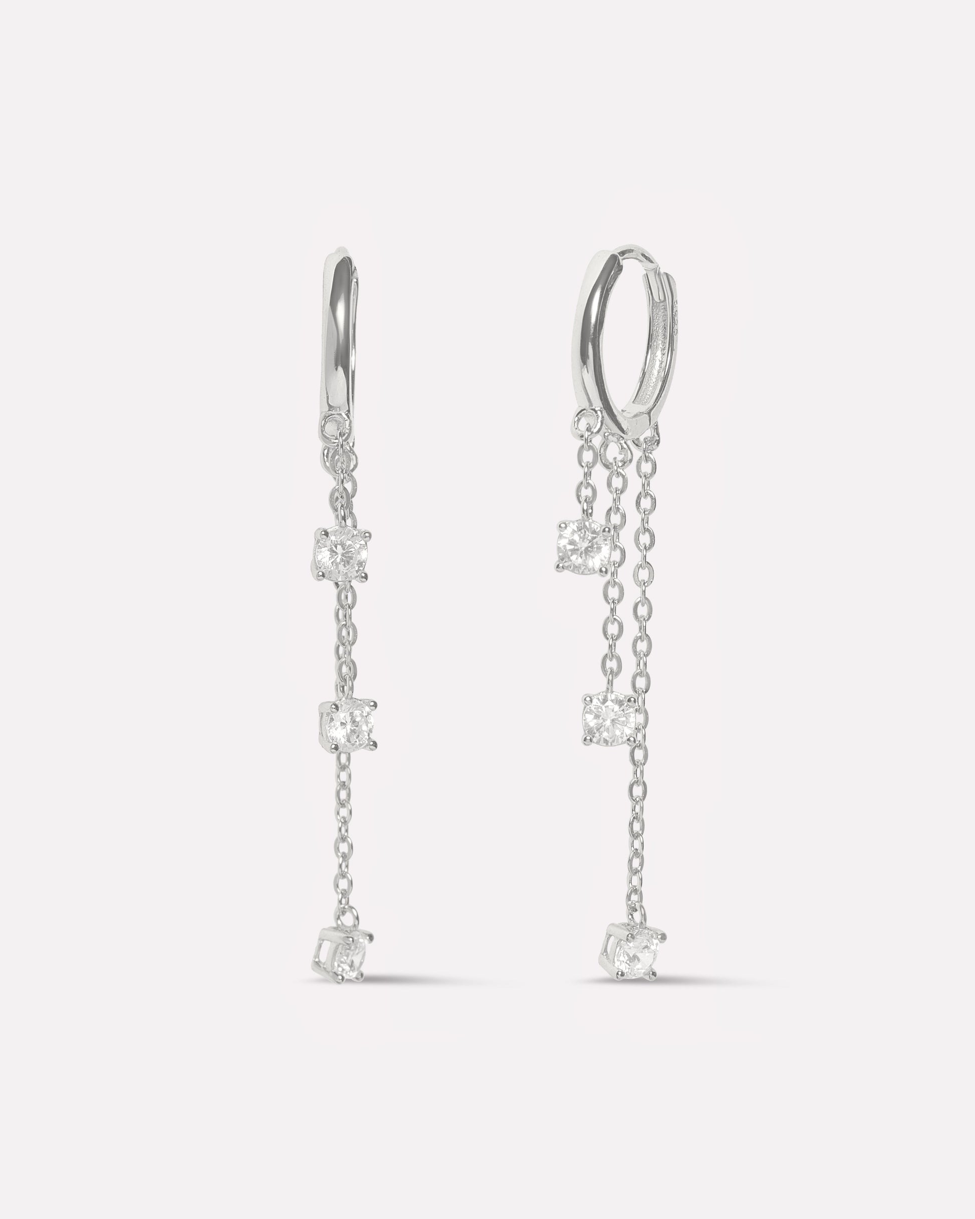 Corisande Chain Connector Earrings in 92.5 sterling silver with 5A+ zirconia stones. Rhodium plated for lasting brilliance, these elegant chain connector earrings combine sparkling stones and modern design, perfect for layering, daily wear, or gifting.