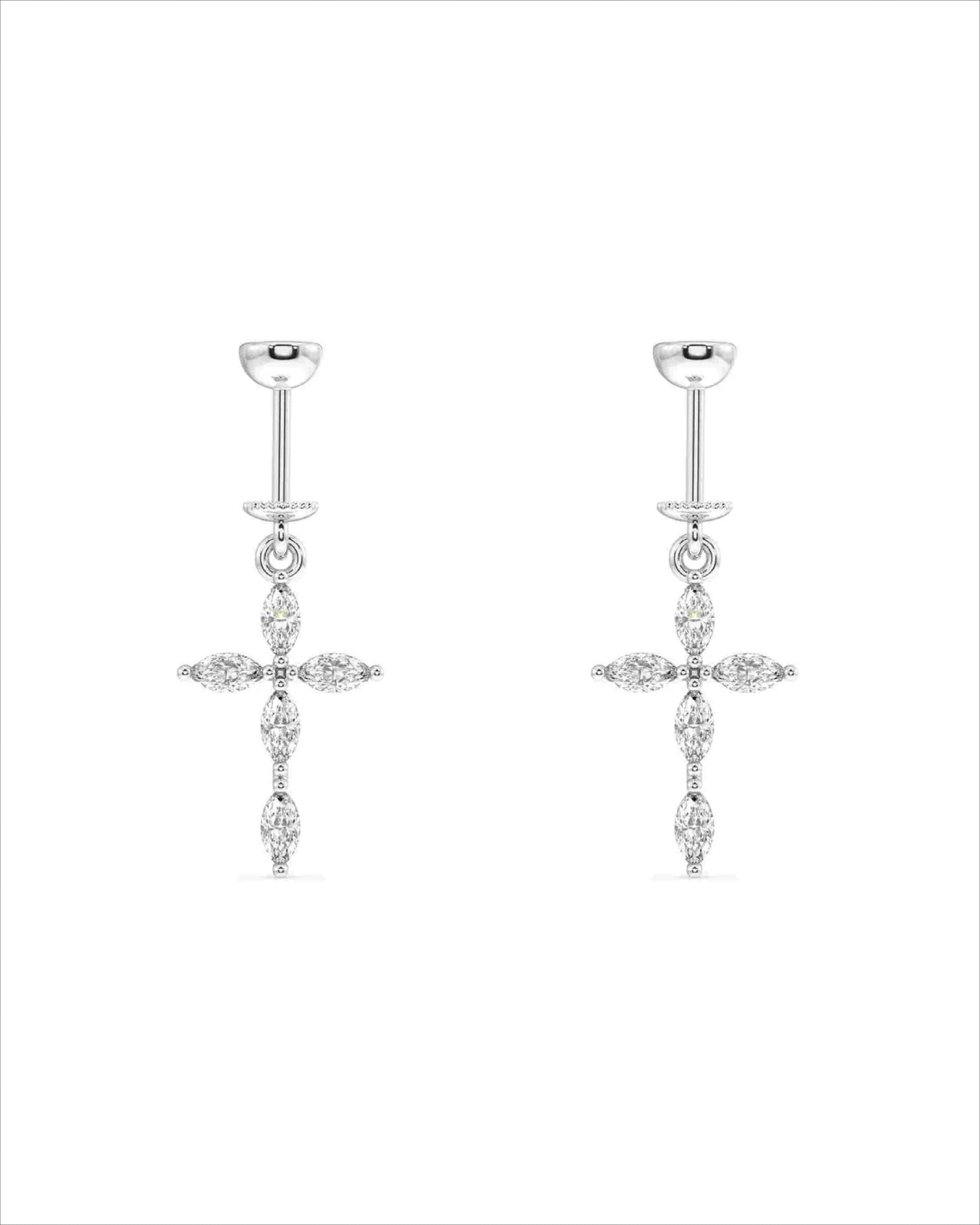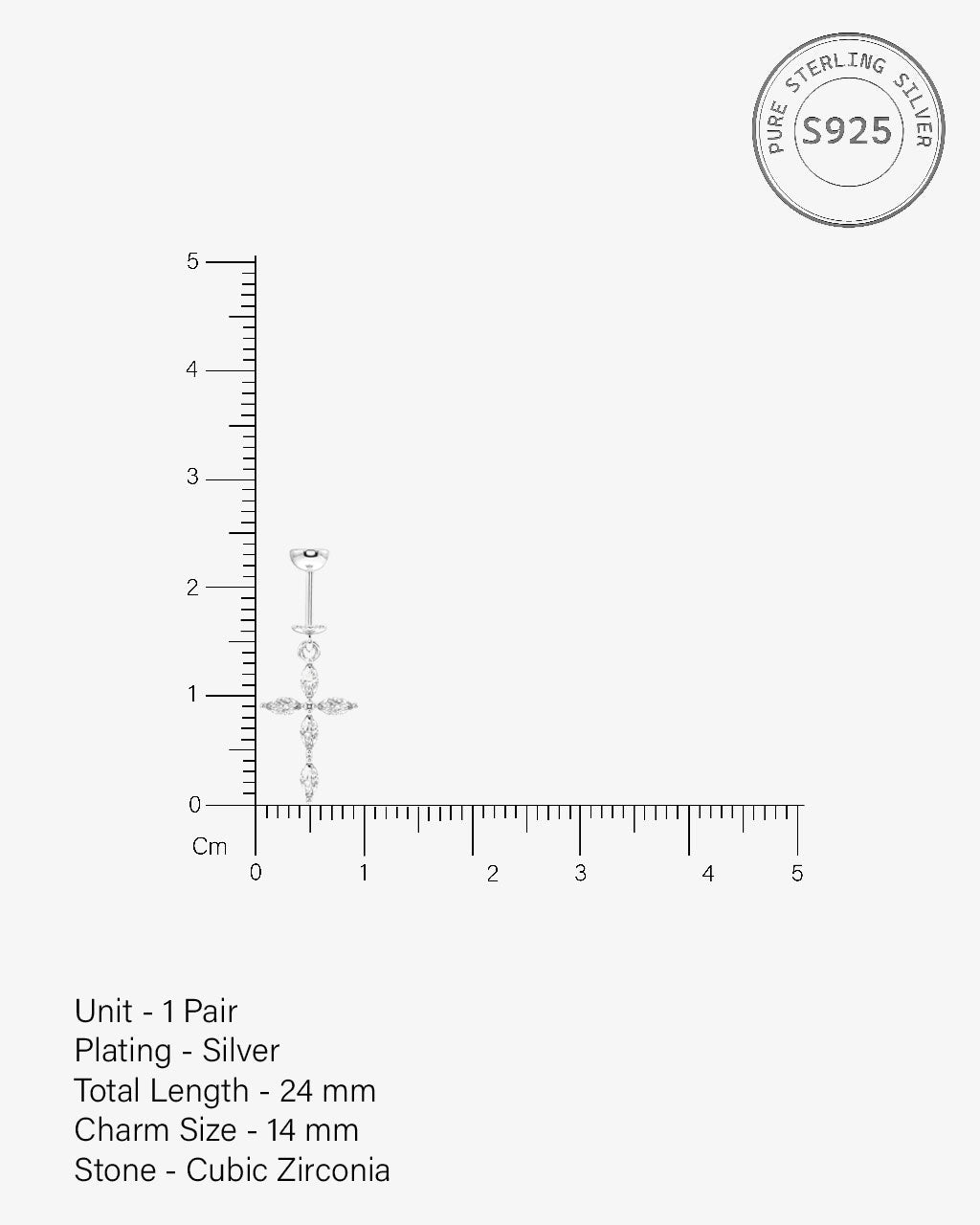 Criss Cross Screw Helix Hanging Earrings in 92.5 sterling silver with rhodium plating and sparkling 5A+ zirconia stones. The intersecting crisscross design adds a modern, edgy charm to helix piercings, perfect for layering, styling, or gifting a contemporary jewelry piece.