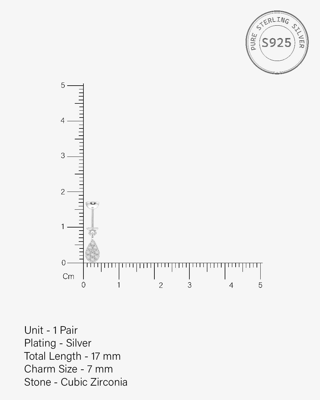 Cubic Zirconia Drop Screw Helix Hanging Earrings in 92.5 sterling silver with rhodium plating, adorned with 5A+ zirconia stones. The elegant drop design adds subtle sparkle to helix piercings, ideal for layering, everyday wear, or gifting a timeless, chic accessory.