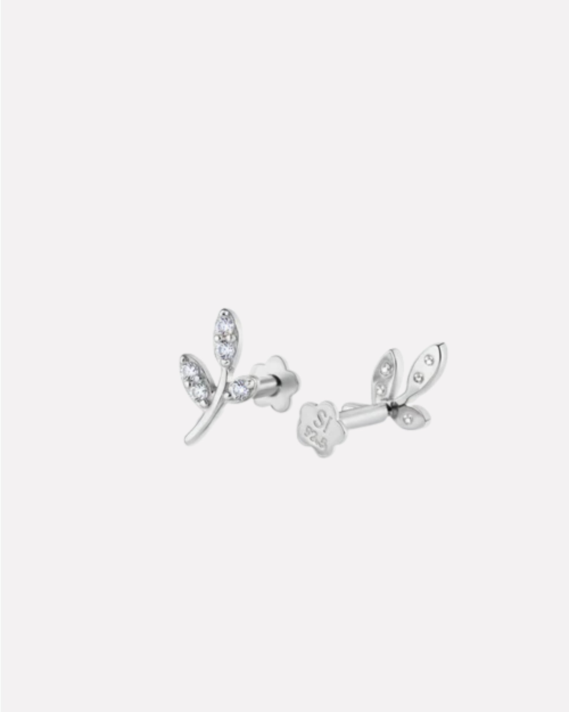 Curvy Leaf Flat Back Screw Stud Earrings in 92.5 sterling silver with 5A+ zirconia stones. Rhodium plated, featuring a delicate leaf-inspired design on a secure screw-back, perfect for everyday elegance.