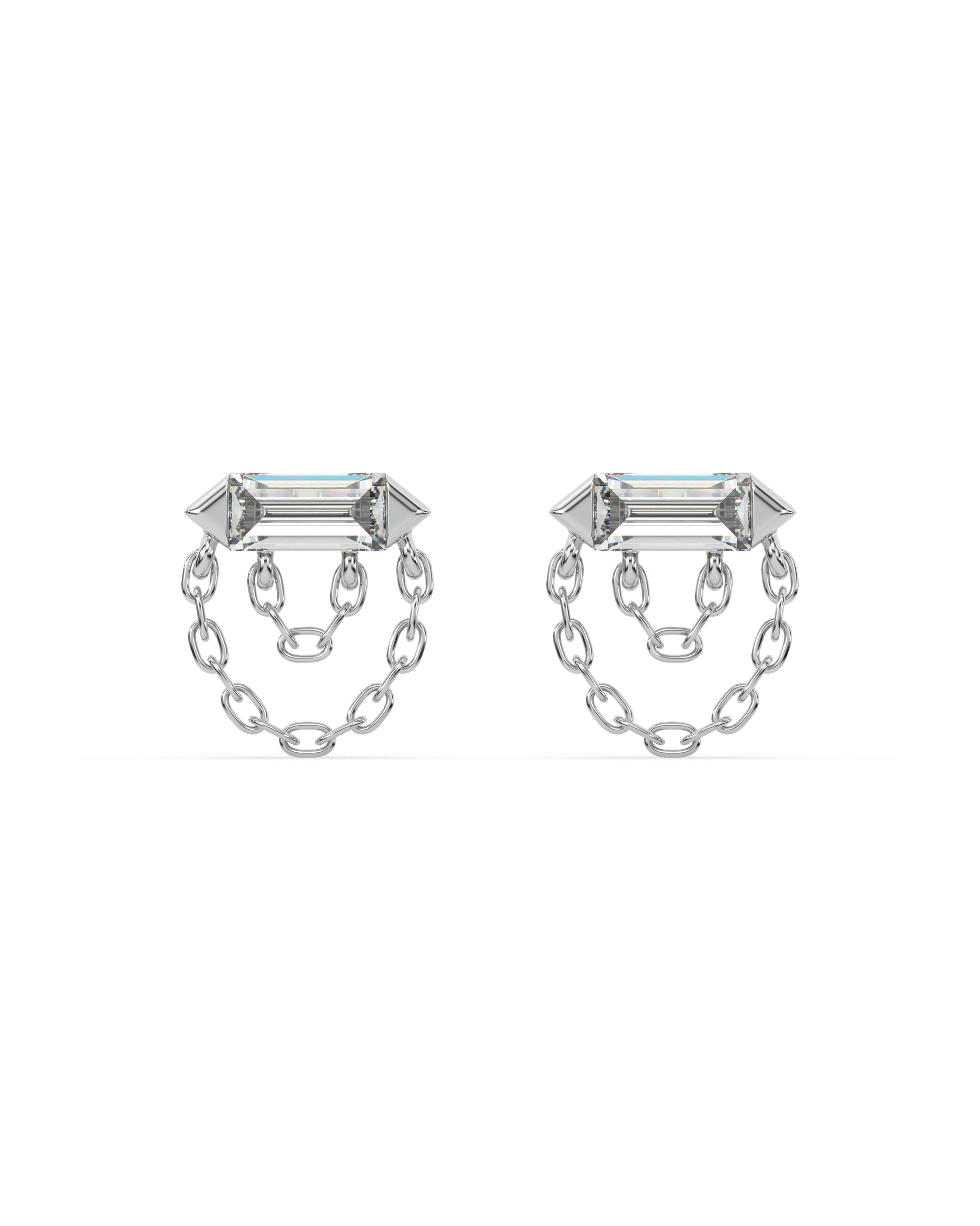 Double Chain Baguette Stud Earrings in 92.5 silver with 5A+ zirconia stones and rhodium plating combine sleek baguette sparkle with chain detail. A chic design that adds elegance and movement to modern jewelry styling.