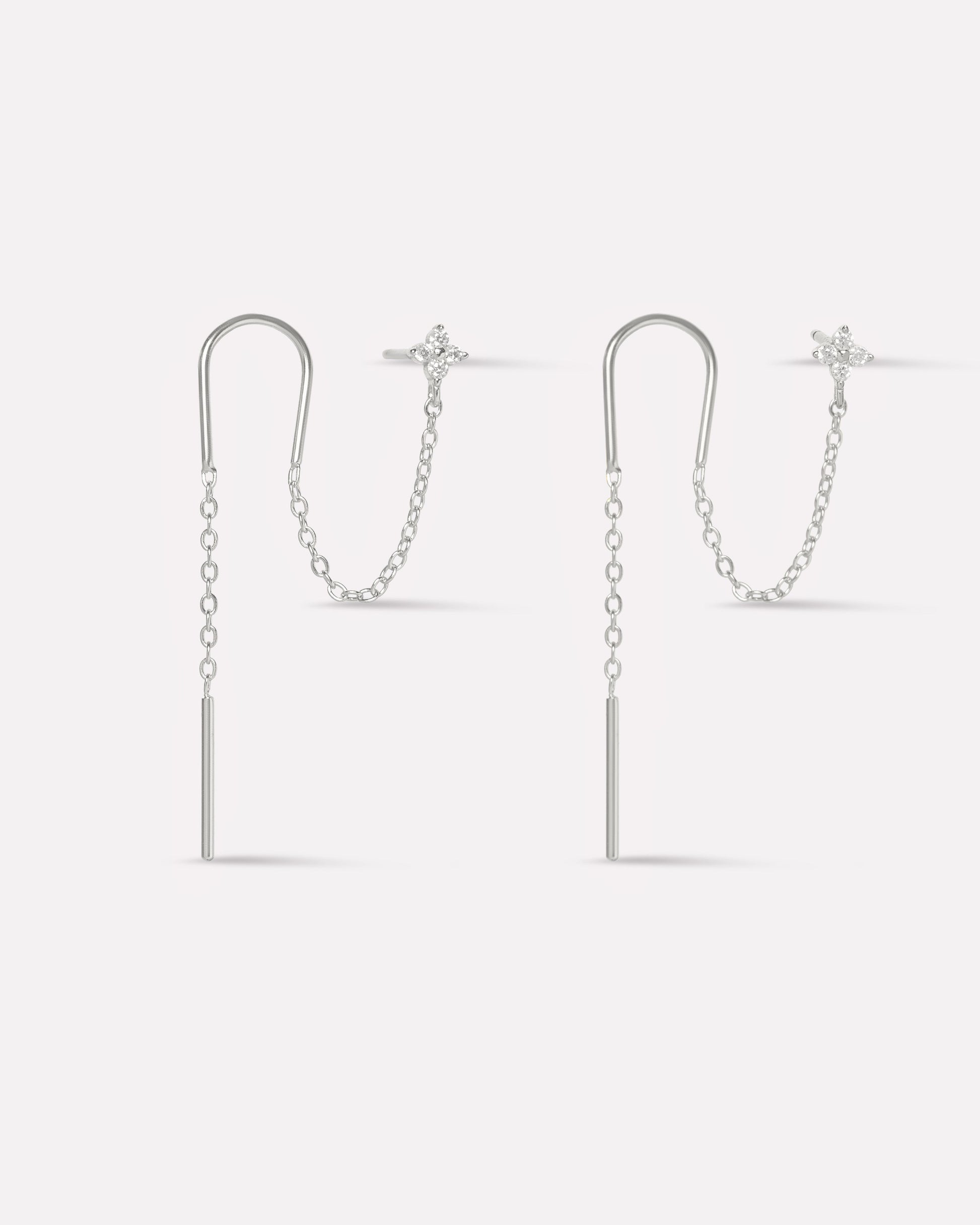 Elise Chain Connector Earrings in 92.5 sterling silver with 5A+ zirconia stones. Rhodium plated for lasting brilliance, these elegant chain connector earrings feature sparkling stones and a modern design, perfect for layering, daily wear, or gifting.