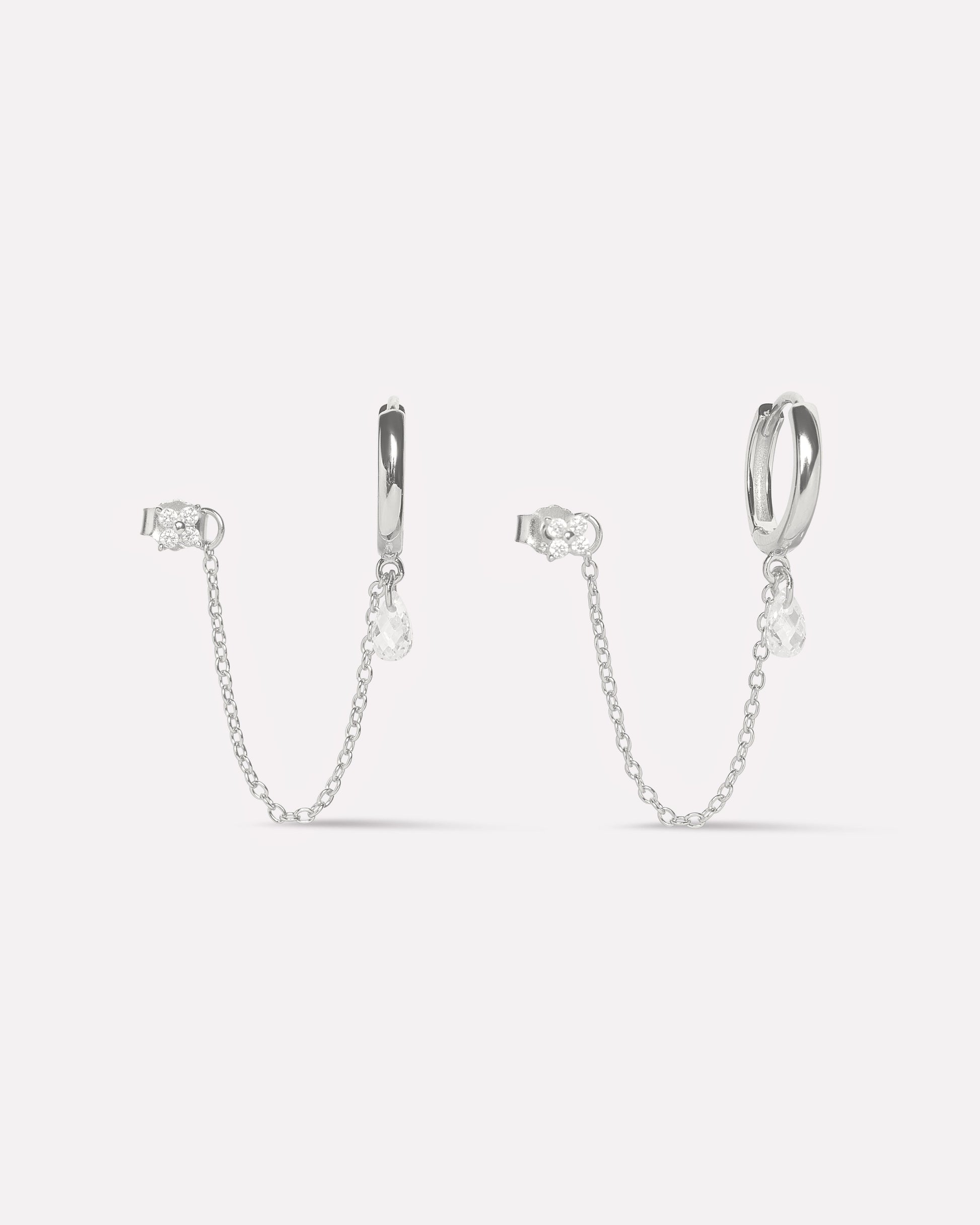 Estelle Chain Connector Earrings in 92.5 sterling silver with 5A+ zirconia stones. Rhodium plated for lasting brilliance, these modern chain connector earrings feature sparkling stones and elegant design, perfect for layering, everyday wear, or gifting.